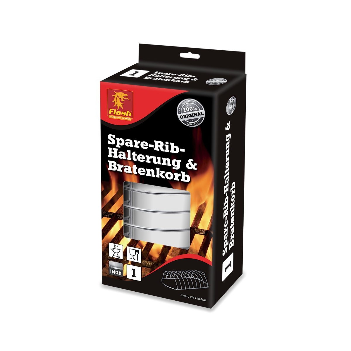 Porta spiedini in acciaio con doppia funzione. Da un lato si posizionano spiedini e costine, dall’altro l’arrosto.