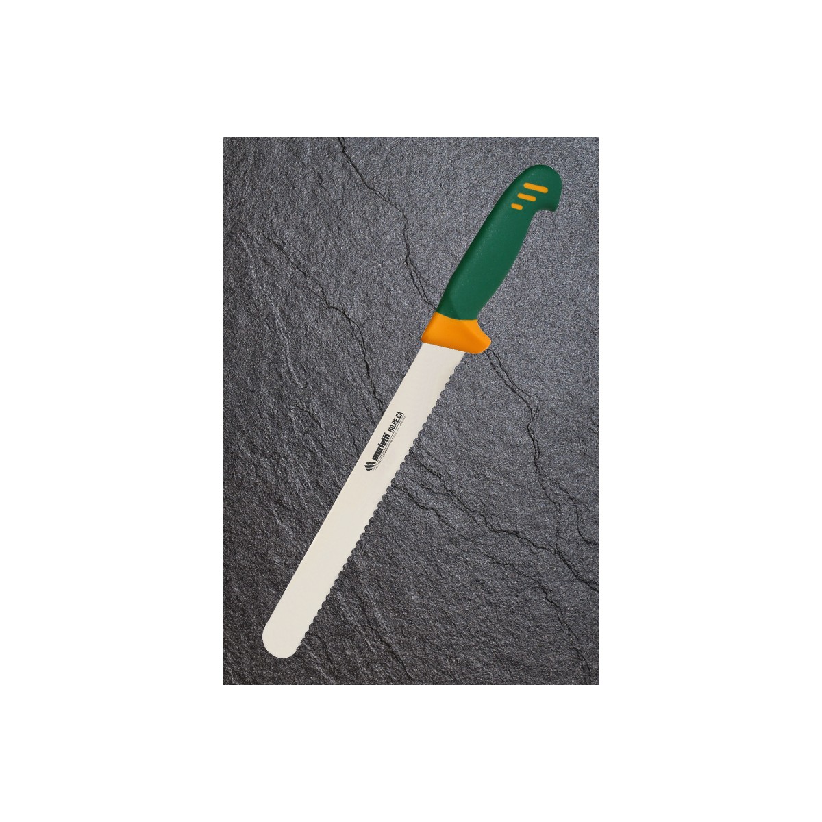 Affettare il pane in maniera precisa e servire belle fette, é un'azione quotdiana. Inoltre torte, sformati, rollé ed altre preparazioni salate o sdolci, richiedono un taglio preciso senz aeffettuare pressioni sull'alimento, e questa lama ne agevola il taglio.La punta non serve e la lama deve essere ondulata così da incidere piano piano la crosta senza frantumarla.