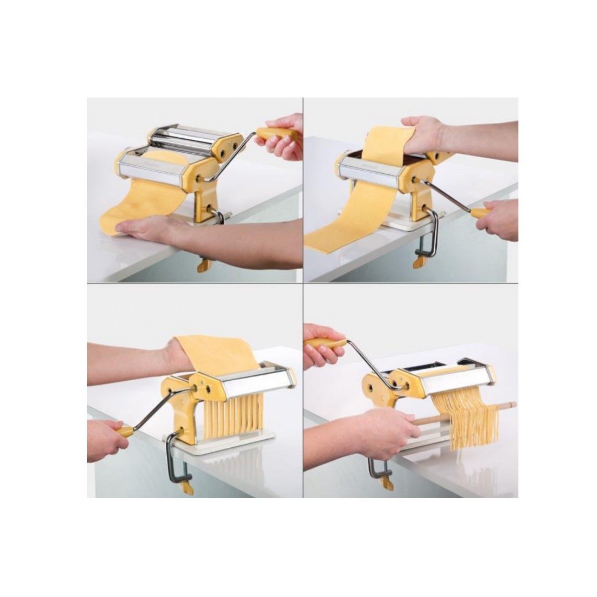 Macchina per pasta fresca realizzata in acciaio inossidabile di alta qualità, provvista di un robusto morsetto per fissarla al piano di lavoro, un classico intramontabile per preparare dalle lasagne alle fettuccine, ai tagliolini. Per essere orgogliosamente italiani, anche in cucina!