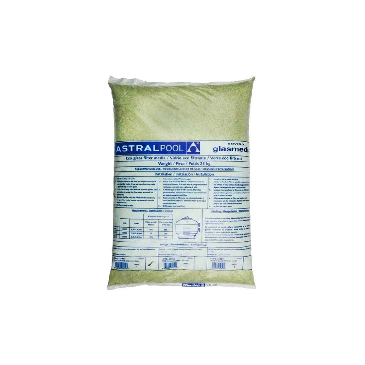 Prodotto ecologico, da utilizzare unicamente con filtrazione a sabbia. Dura di più rispetto alla normale sabbia quarzifera.