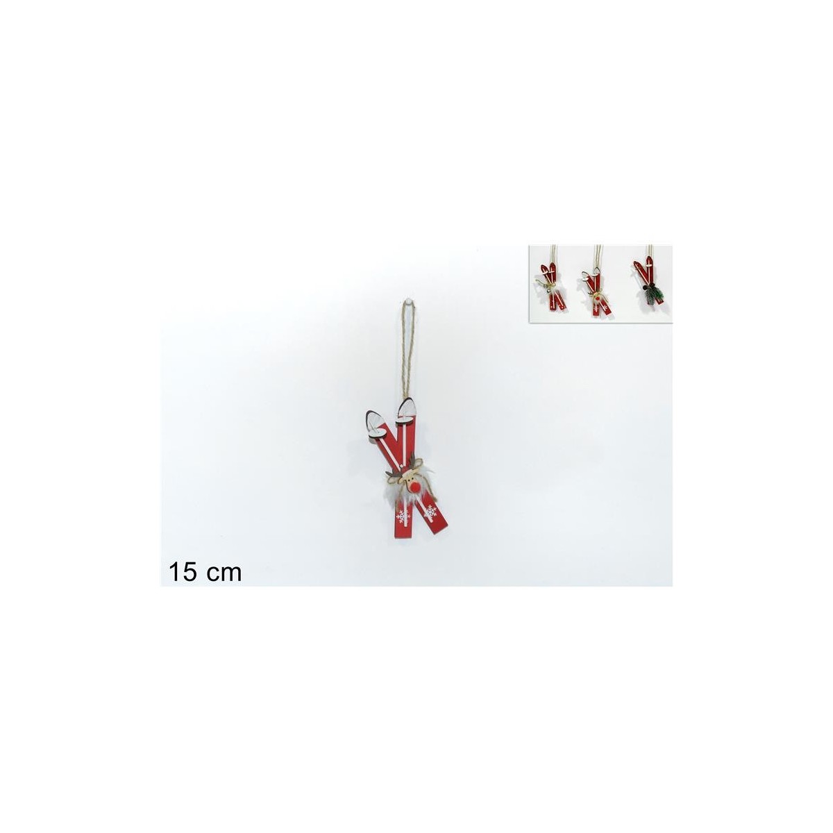 Appendino natalizio con raffigurato un paio di sci rossi. Misura: 15 cm.