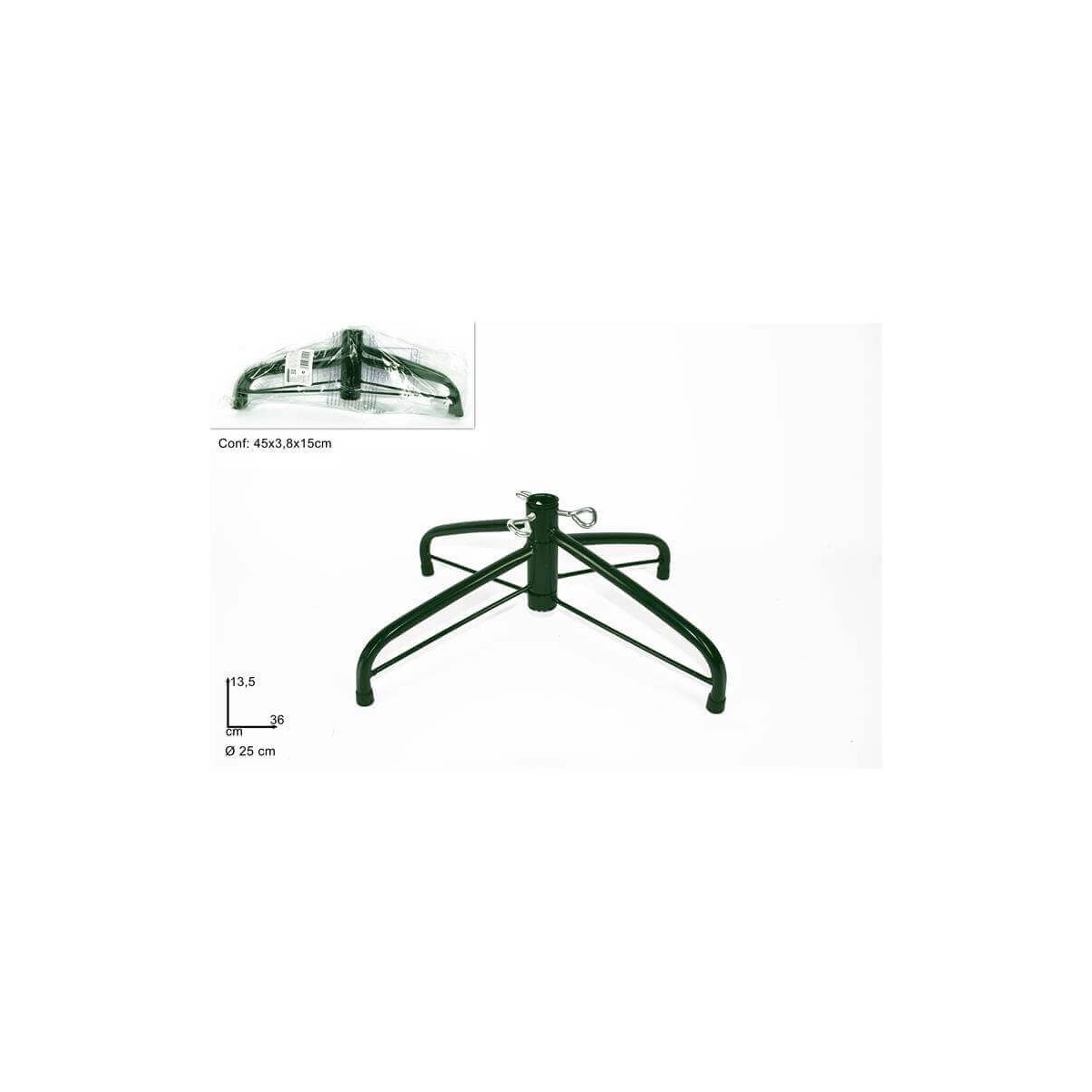 Base per albero di natale a croce richiudibile, in metallo verde. Misure 36 cm per diametro 25 cm.