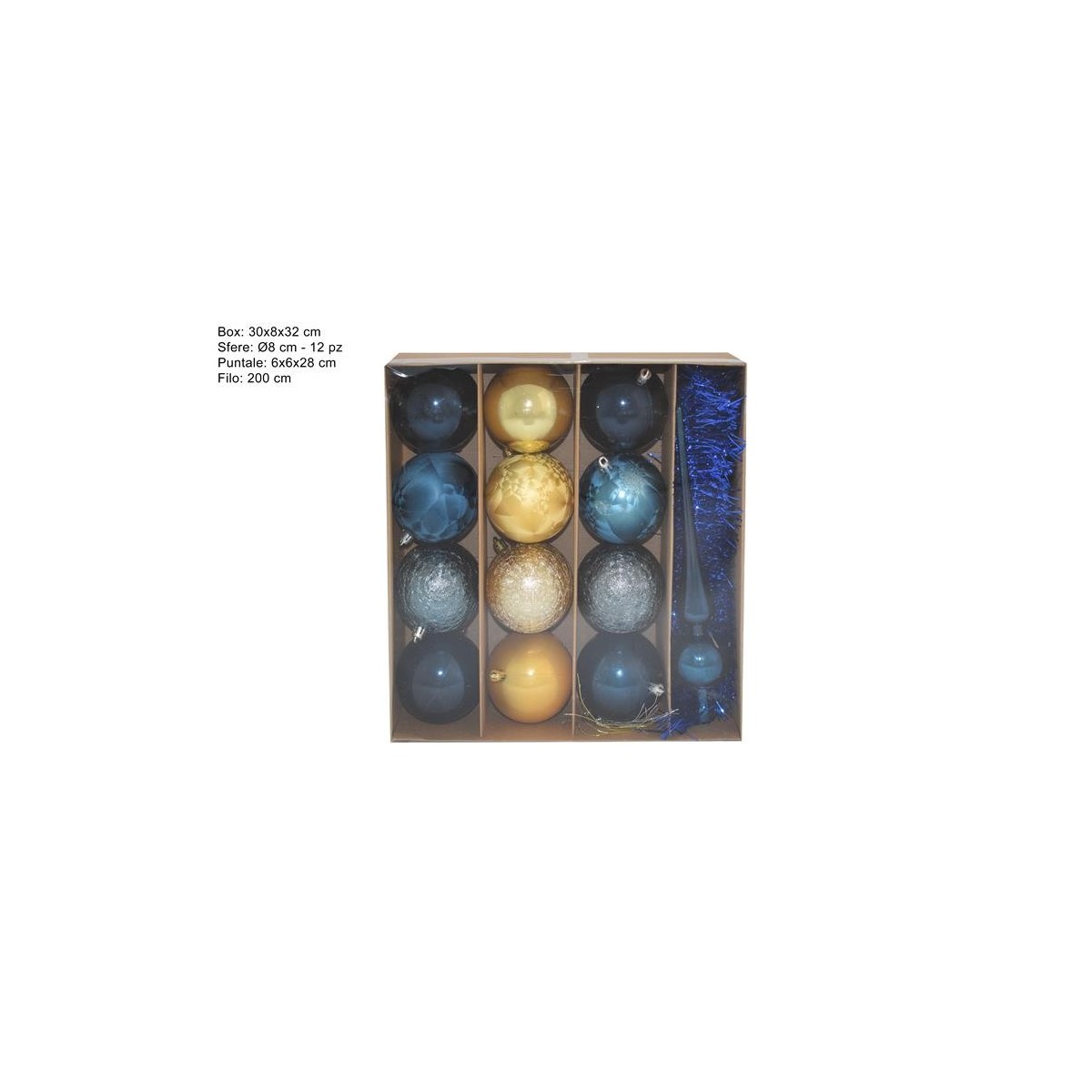 Box Formato da 12 Palline + 1 Puntale Blu-Oro DUEESSE CHRISTMAS