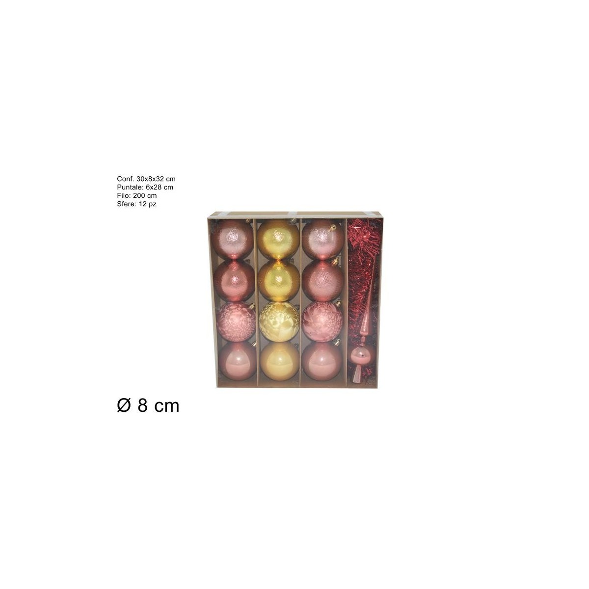 Box Formato da 12 Palline + 1 Puntale Rosa & Oro DUEESSE CHRISTMAS