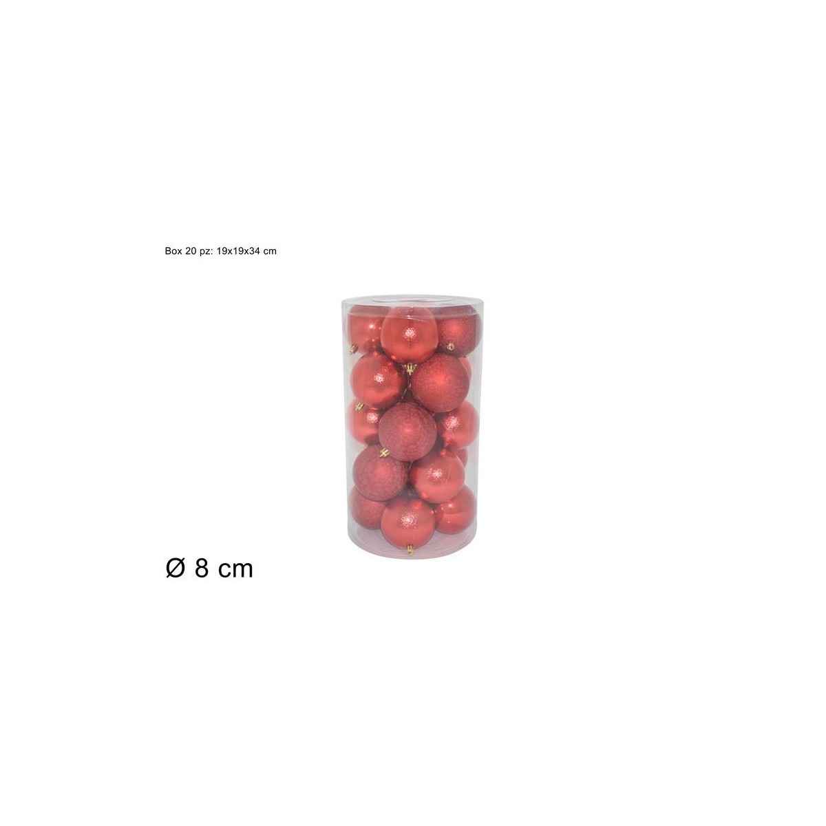 Box composta da 20 palline natalizie in plastica diametro 8 cm. Colore rosso lucido.