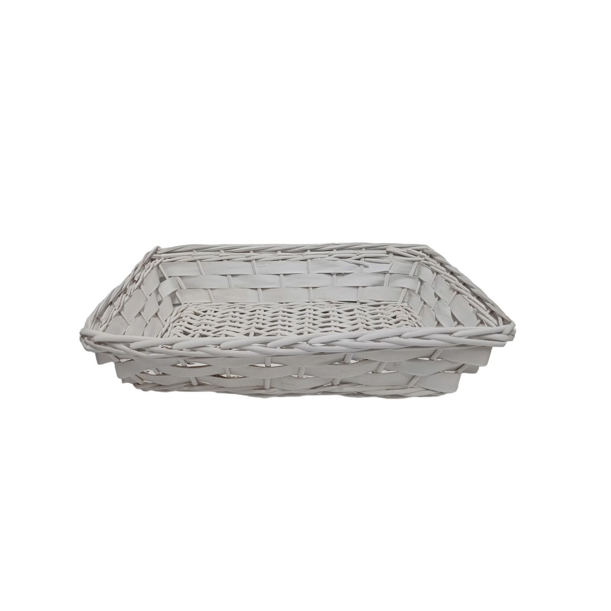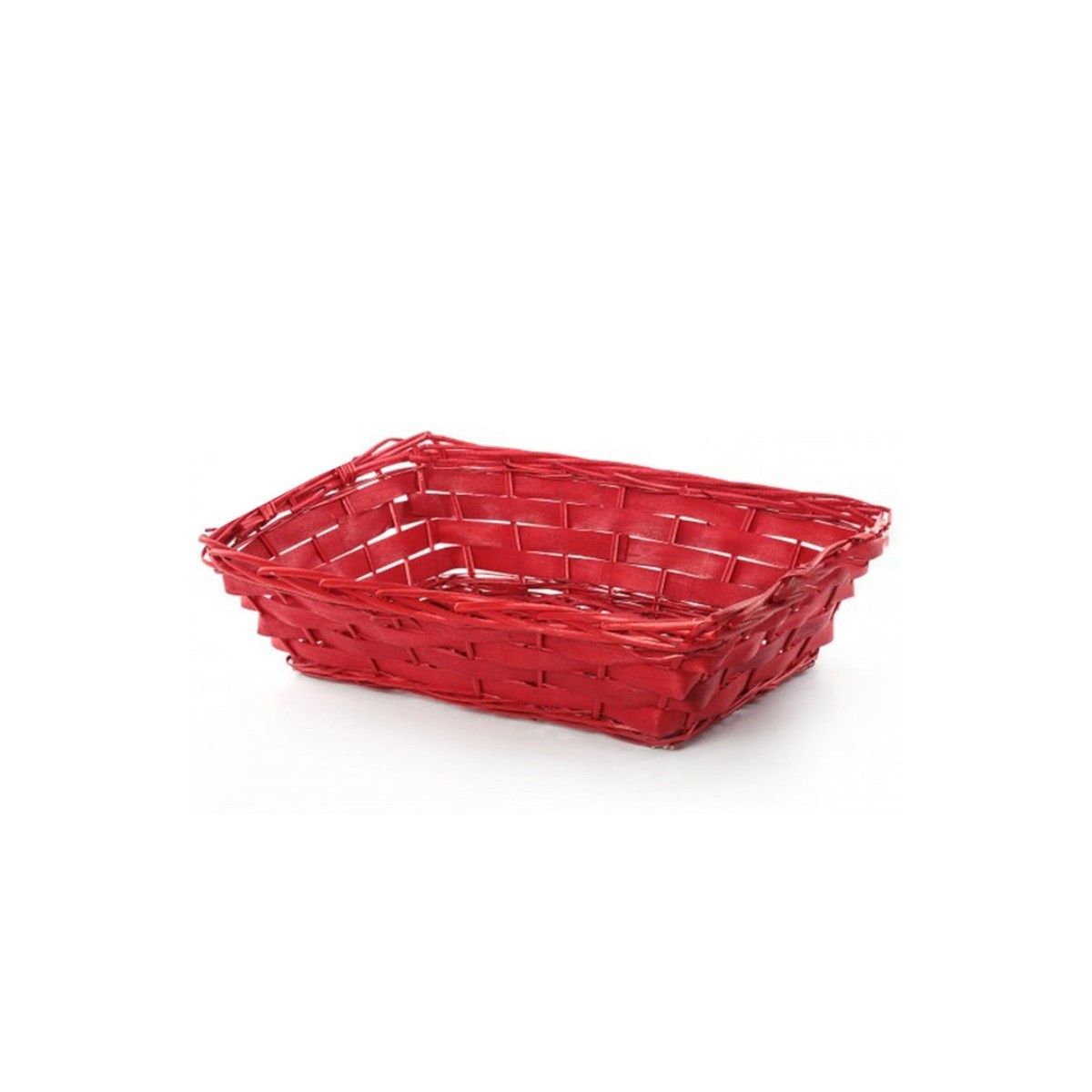 Cestino natalizio Rettangolare in Vimini Bianco/Rosso Senza Manici per Confezioni Regalo da 50 cm