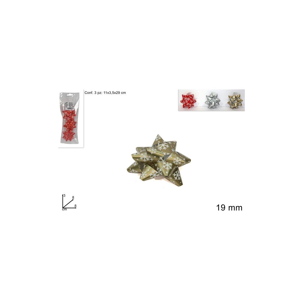 Confezione da 3 coccarde neve da 19 mm. Ideali per decorare i vostri regali.