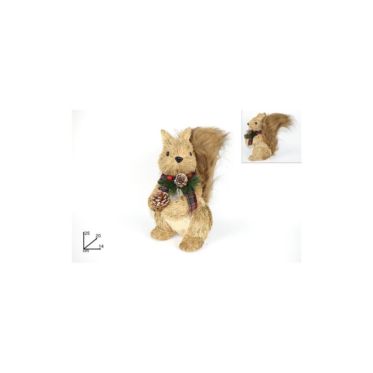 Scoiattolo con fiocco decorato con pigne. Altezza: 25 cm
