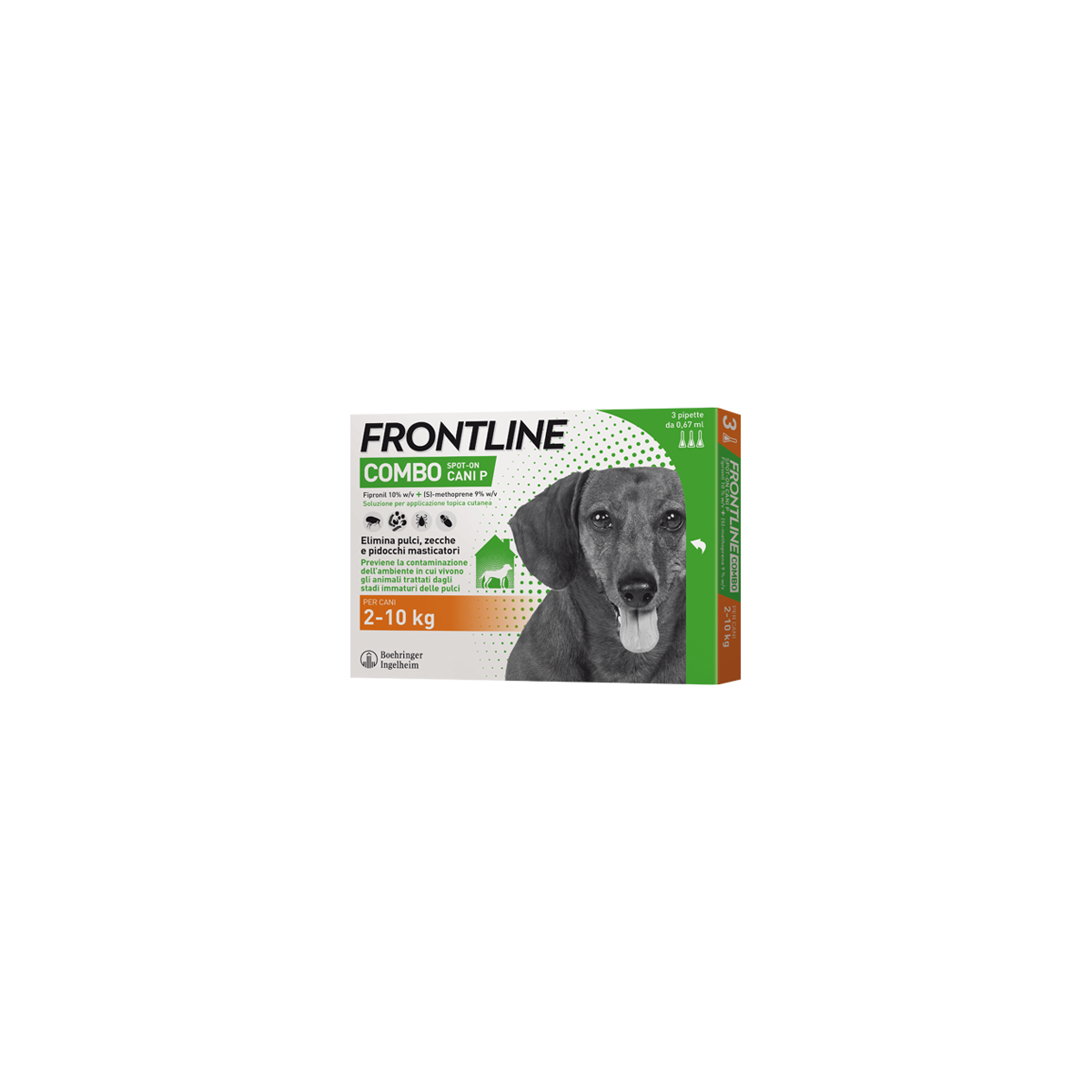 FRONTLINE® COMBO Spot-on Cani è una soluzione insetticida e acaricida in forma spot-on per cani. Grazie alla combinazione dei suoi due principi attivi, Fipronil e (S)-methoprene, è attivo su zecche, pidocchi, pulci adulte, uova e larve di pulci, impedendo la comparsa di nuovi parassiti.