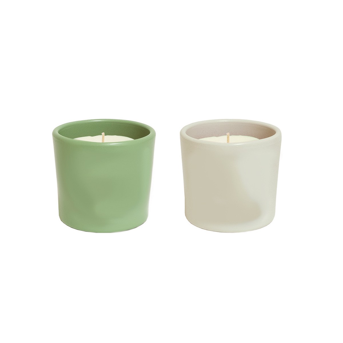 Bicchiere in terracotta colorata con candela alla citronella ed eucalipto. Dimensioni cm 9,5x8,5.