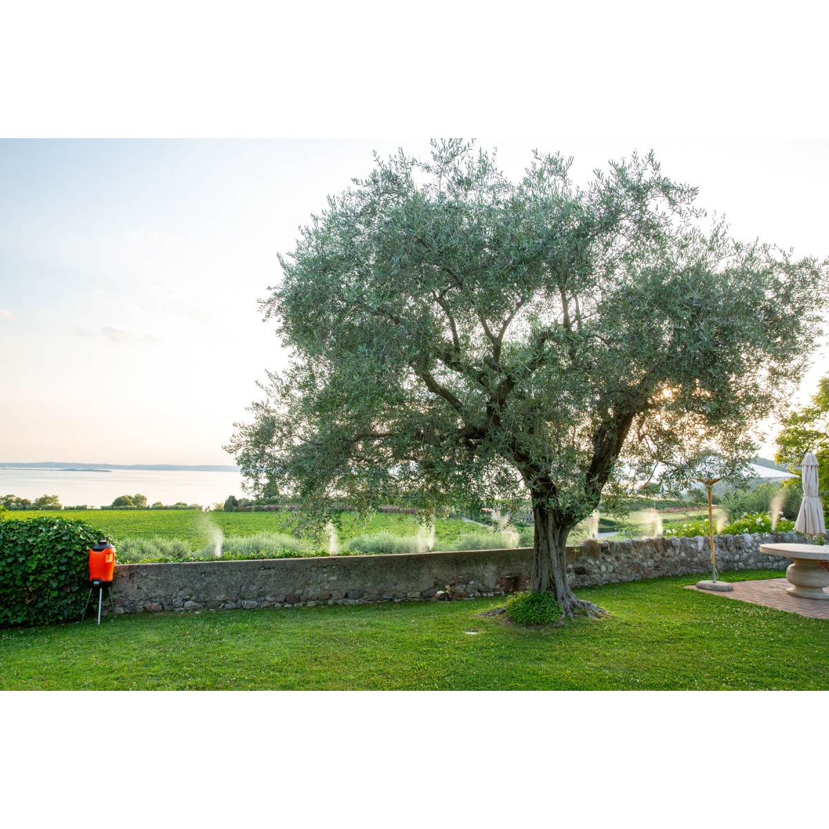 Grazie all'alimentazione a batteria, è possibile posizionare il Geyser Nebulizzatore E-25 MI 21 V facilmente nei punti strategici da voi scelti, anche grazie al pratico treppiede in alluminio.