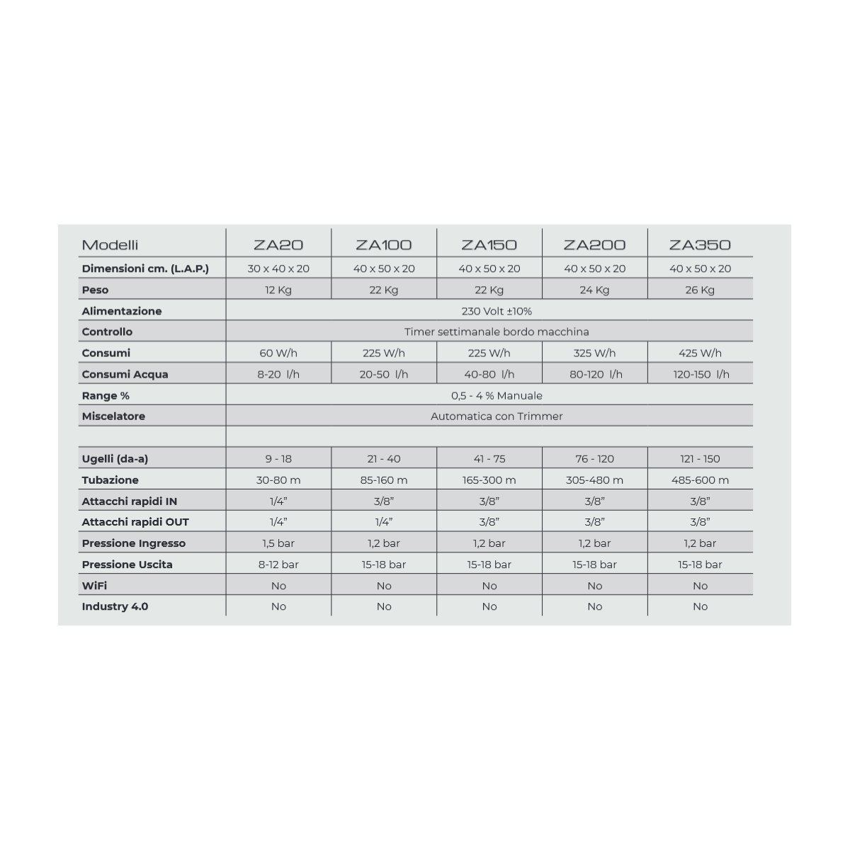 ZA200: Ugelli: da 76 a 120 / Superficie: da 5500 a 8000