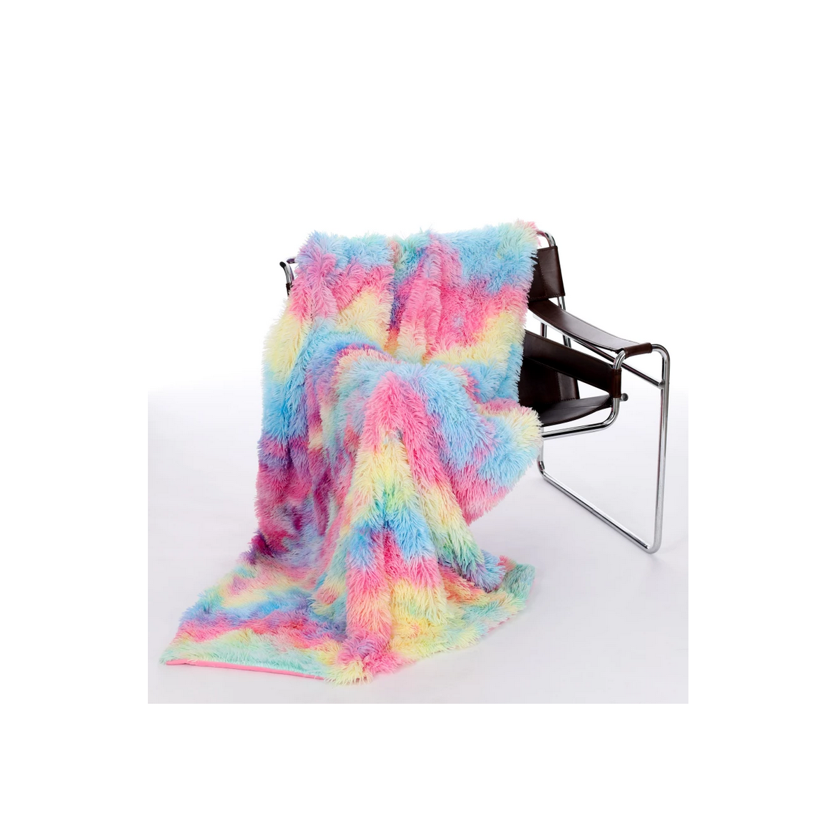 Rainbow è una coperta pile con un soffice pelo effetto pelliccia, lungo e caldo. Un plaid caldo invernale utilizzabile come coperta per divano o plaid divano, come coperta letto singolo o plaid plaid matrimoniale per aggiungere calore e colore alla casa.