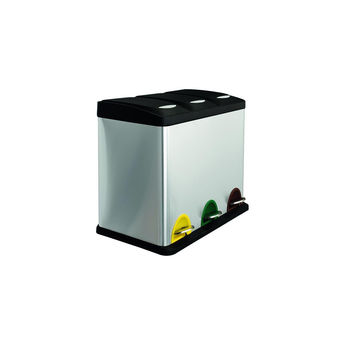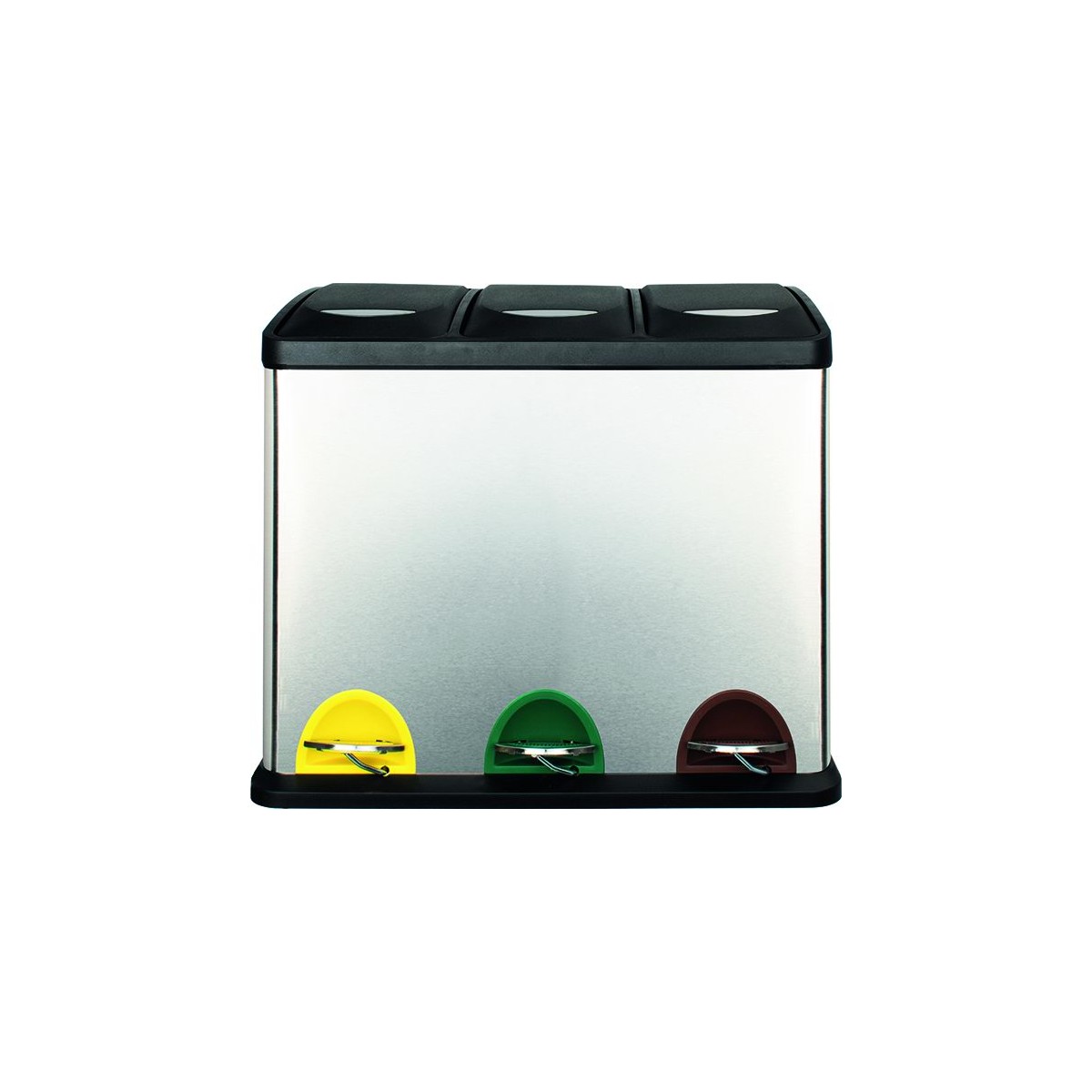 PATTUMIERE DIFFERENZIATA VIGOR IN ACCIAIO INOX S10 SATINATO CESTI INTERNI ESTRAIBILI IN PP APERTURA A PEDALE CAPACITA' 8+8+8 LITRI CON PRATICO GANCIO POSTERIORE