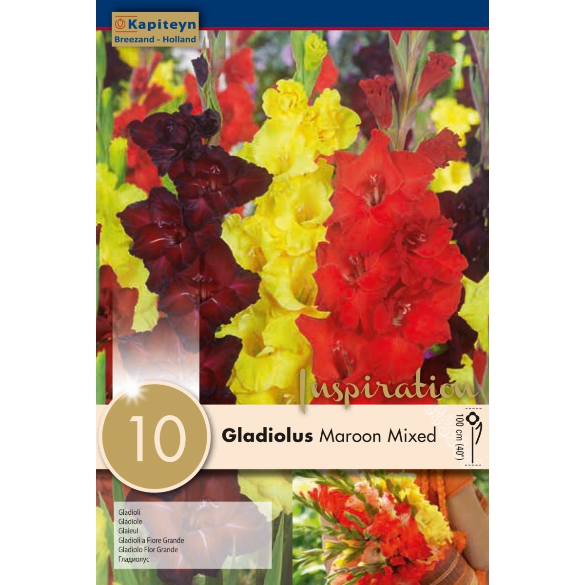 Bulbi di Gladiolo Marron Mixed confezione da 10 pezzi. Calibro selezionato 12-14 mm. Altezza 100 cm