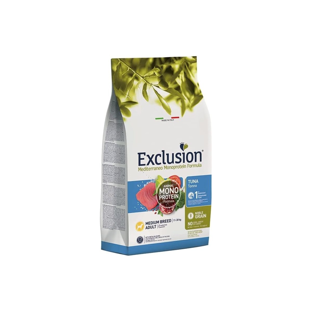 Exclusion Mediterraneo Monoprotein Formula – Noble Grain é un alimento completo e bilanciato formulato con una sola fonte proteica animale disidratata, per una ricetta chiara ed essenziale, e solo un cereale nobile di alta qualità. È preservato con antiossidanti naturali e integrato con Beta-glucani. È realizzato con una innovativa ricetta di Superfood della tradizione Mediterranea: Canapa, Olio d’Oliva, Pomodoro, Melagrana, Broccolo e Cicoria. Senza grasso di pollo, frumento, soia e mais aggiunti.