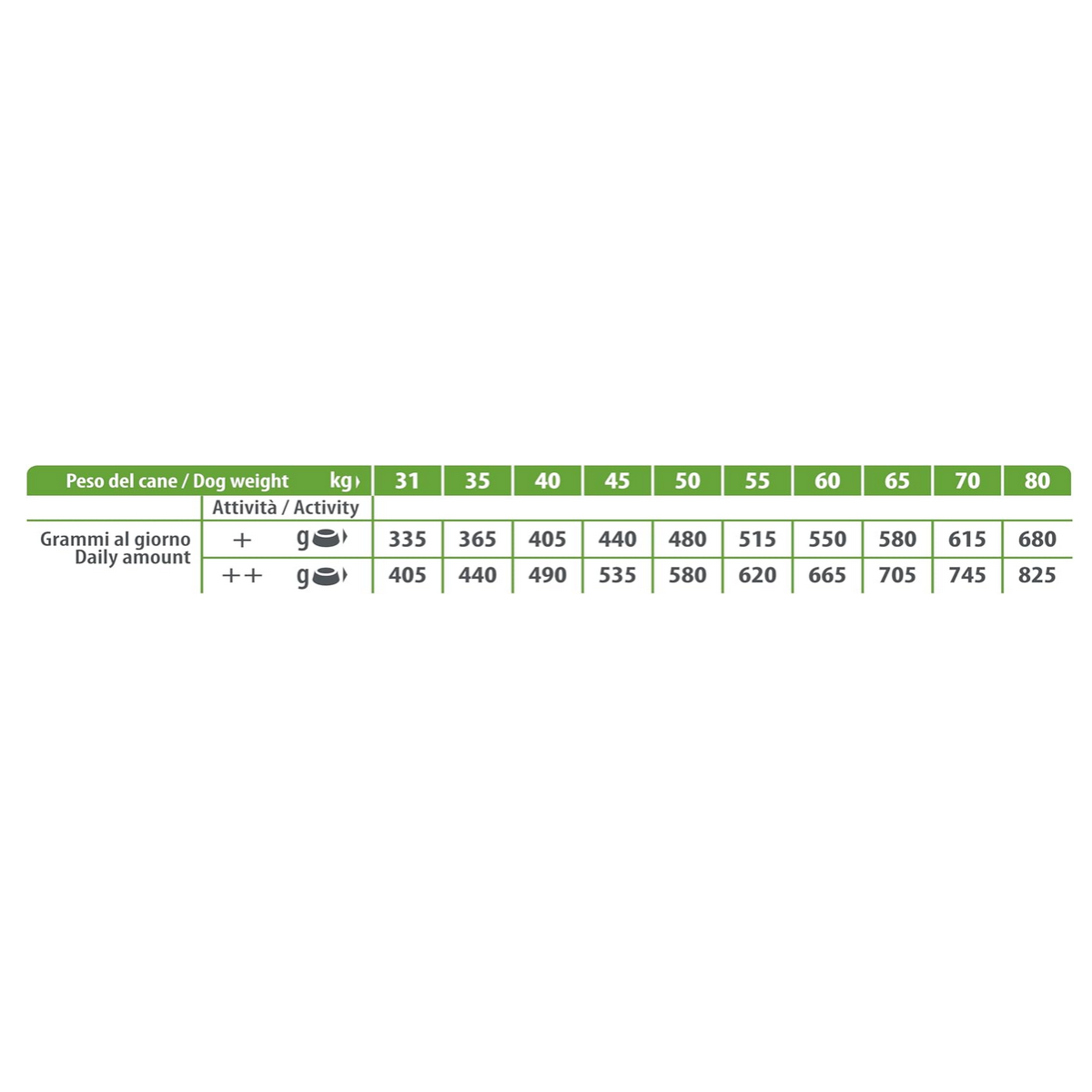 la prima volta introduci l'alimento gradualmente. Servilo tal quale oppure leggermente inumidito con acqua tiepida. Adatta il numero di pasti e le quantità giornaliere consigliate nella tabella allegata in base alle sue esigenze. Puoi abbinare le crocchette all’alimento umido corrispondente, ricordandoti di aggiustare la razione giornaliera. Lasciagli sempre a disposizione una ciotola di acqua fresca e pulita. Conserva l'alimento in un luogo fresco e asciutto. Chiudi sempre la confezione dopo l’apertura.* L’immagine è solo a scopo illustrativo. Gli ingredienti possono essere utilizzati freschi, disidratati o sotto forma di estratti secchi.