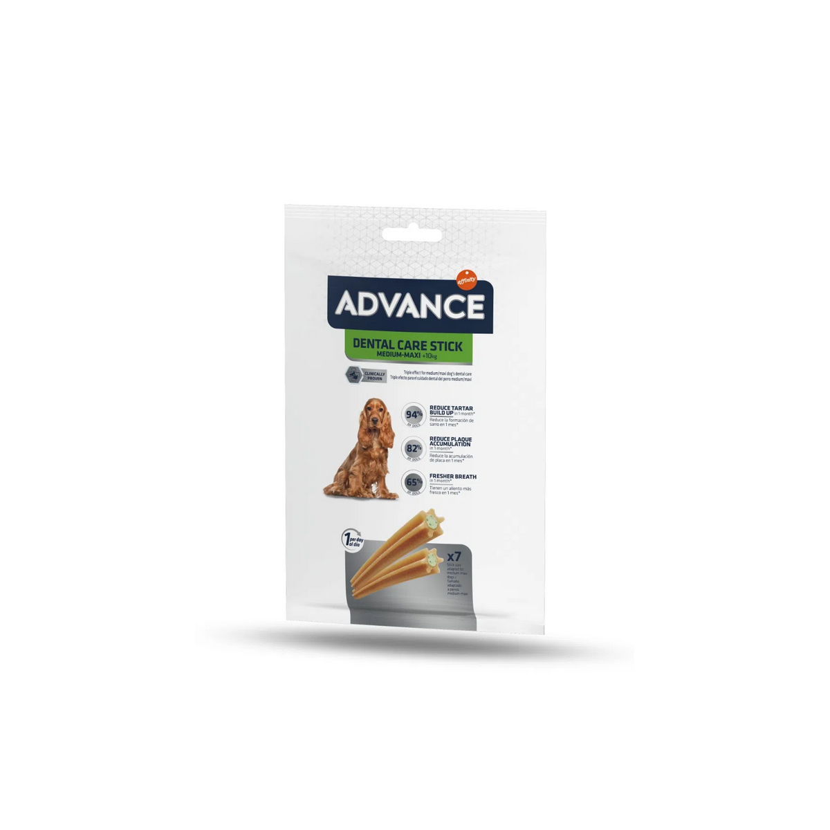 Advance Snack Dog Medium/Maxi Dental Care Stick è un alimento completo per cani adulti (+ 10 kg).