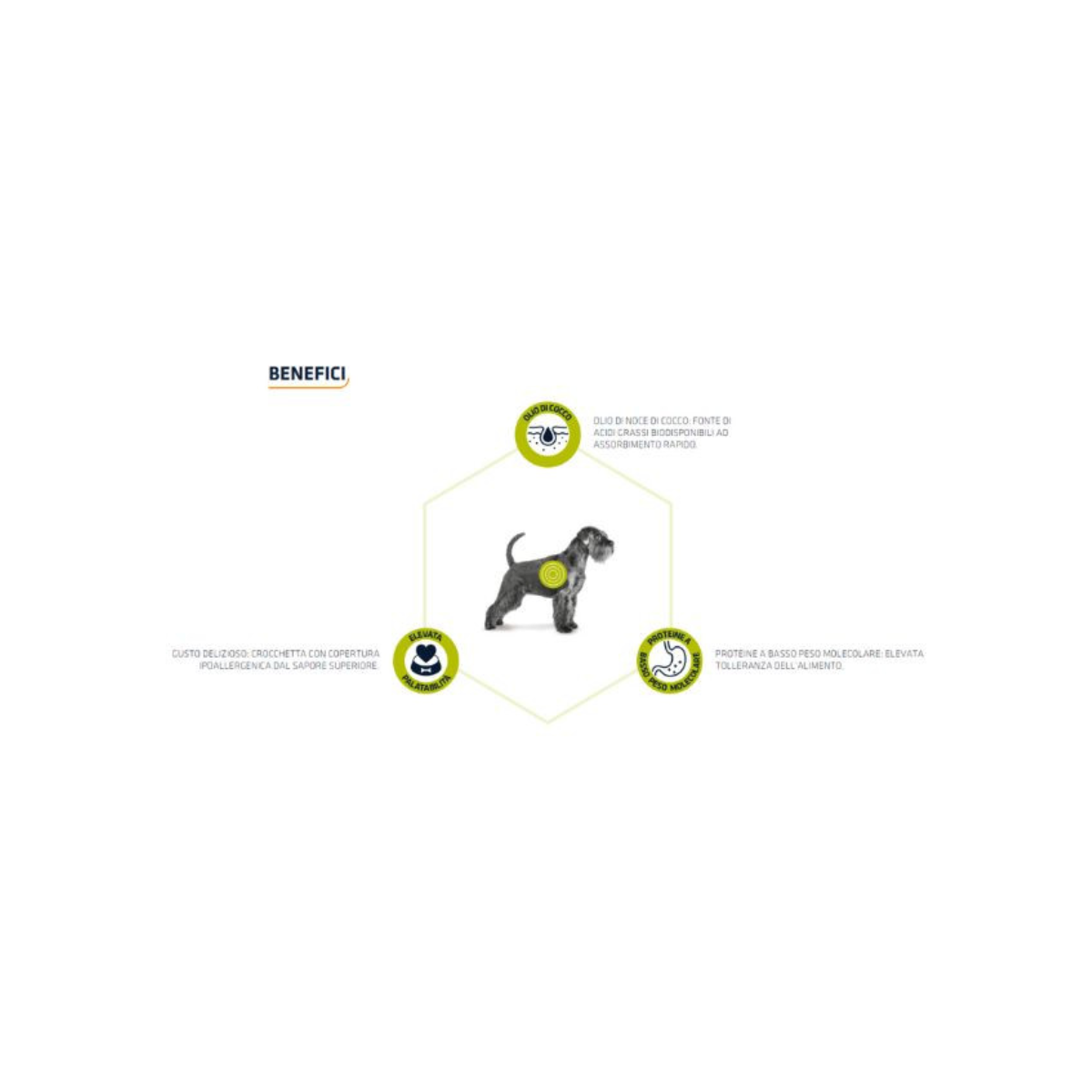 Ingredienti: Amido vegetale purificato , proteina vegetale idrolizzata , grassi animali, stabilizzati con una miscela di tocoferoli di origine naturale , aroma ipoallergenico , cellulosa , olio di noce di cocco (3%) , fosfato monocalcico , carbonato di calcio , fibra fermentata purificata , cloruro di potassio , olio di colza , sale , ossido di magnesio , Fonte di proteine: proteina di soia idrolizzata , Fonte di carboidrati: amido di mais purificato