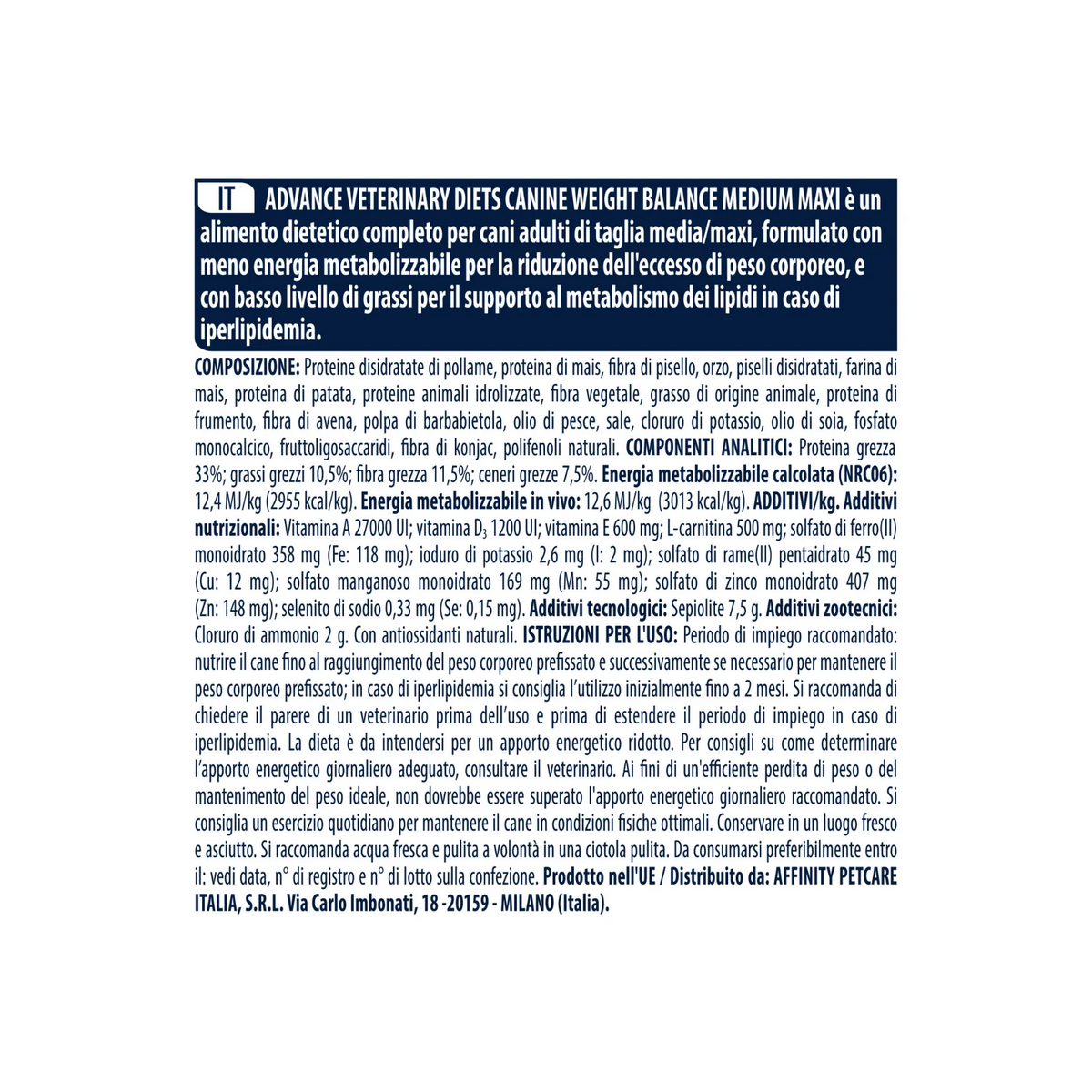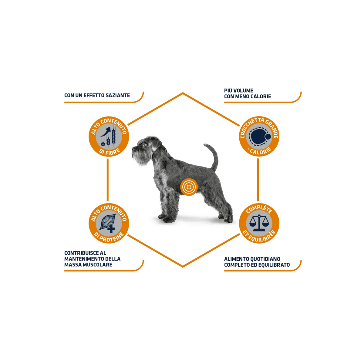 è un alimento dietetico completo per cani adulti di taglia media/maxi, formulato per ridurre l'eccesso di peso e regolare il metabolismo lipidico in caso di iperlipidemia, caratterizzato da bassi livelli calorici, basso contenuto di grassi e alto contenuto di acidi grassi essenziali.