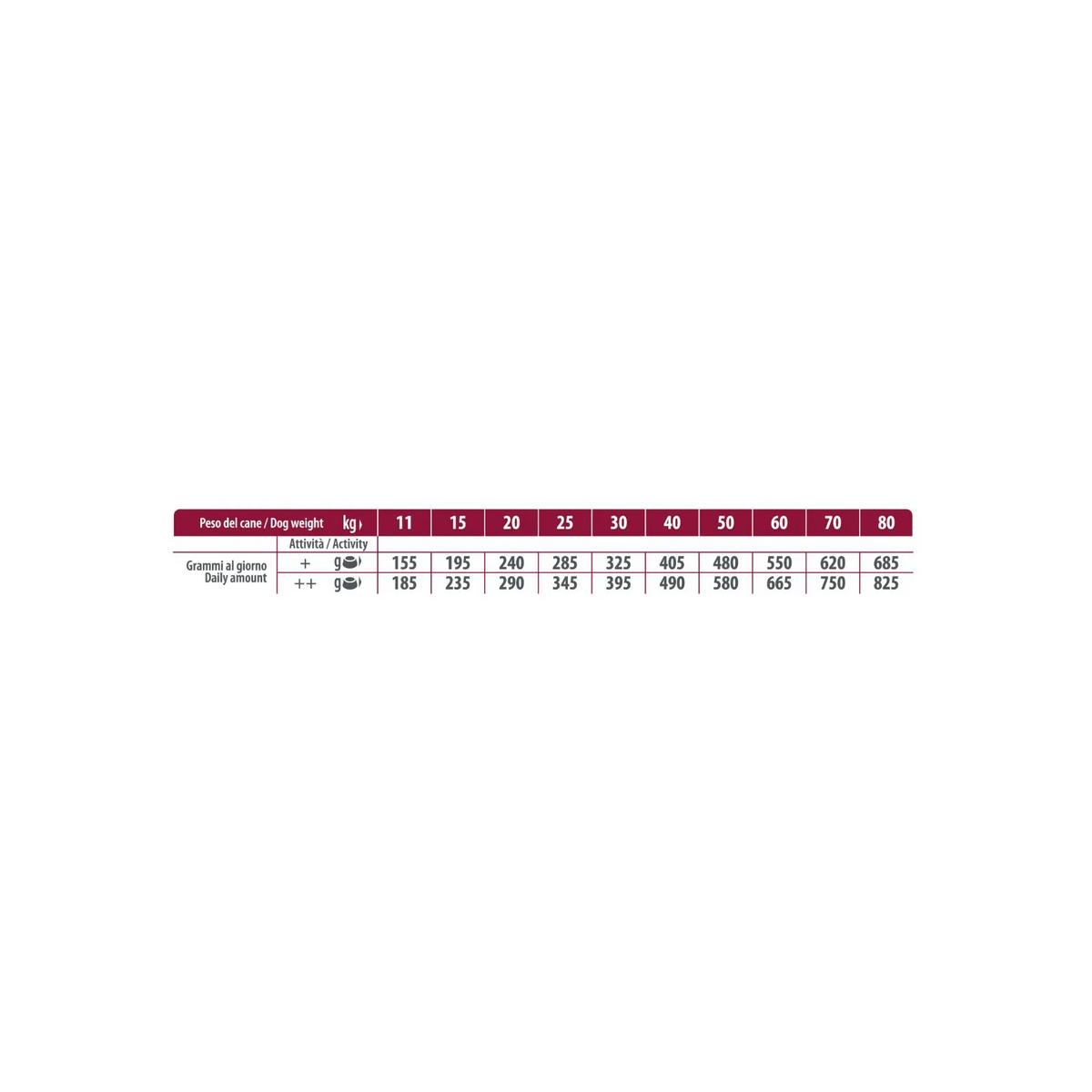 Componenti Analitici: proteina grezza 25%, grassi grezzi 13,5%, fibra grezza 3%, ceneri grezze 0.07, omega 3 1%.