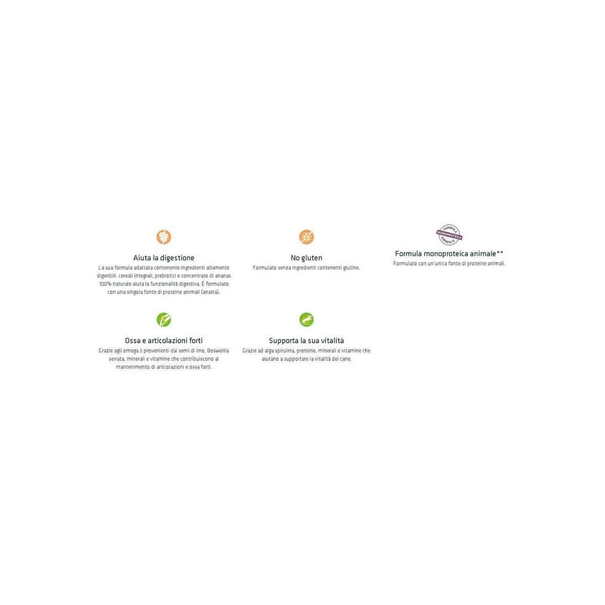 • Contiene la carne di anatra come sola fonte di proteina animale.