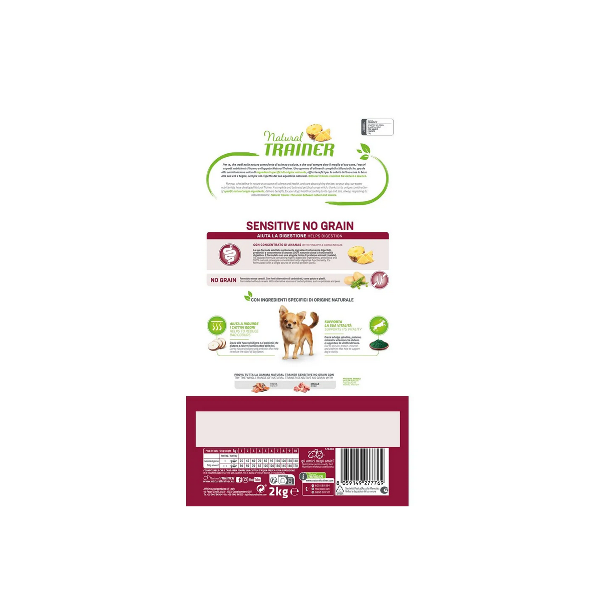 Scegliendo Natural Trainer Sensitive No Grain Mini Maiale sei consapevole che ti stai prendendo cura del tuo amico peloso con un prodotto di alta qualità, specifico per l’esigente del tuo amico cane.