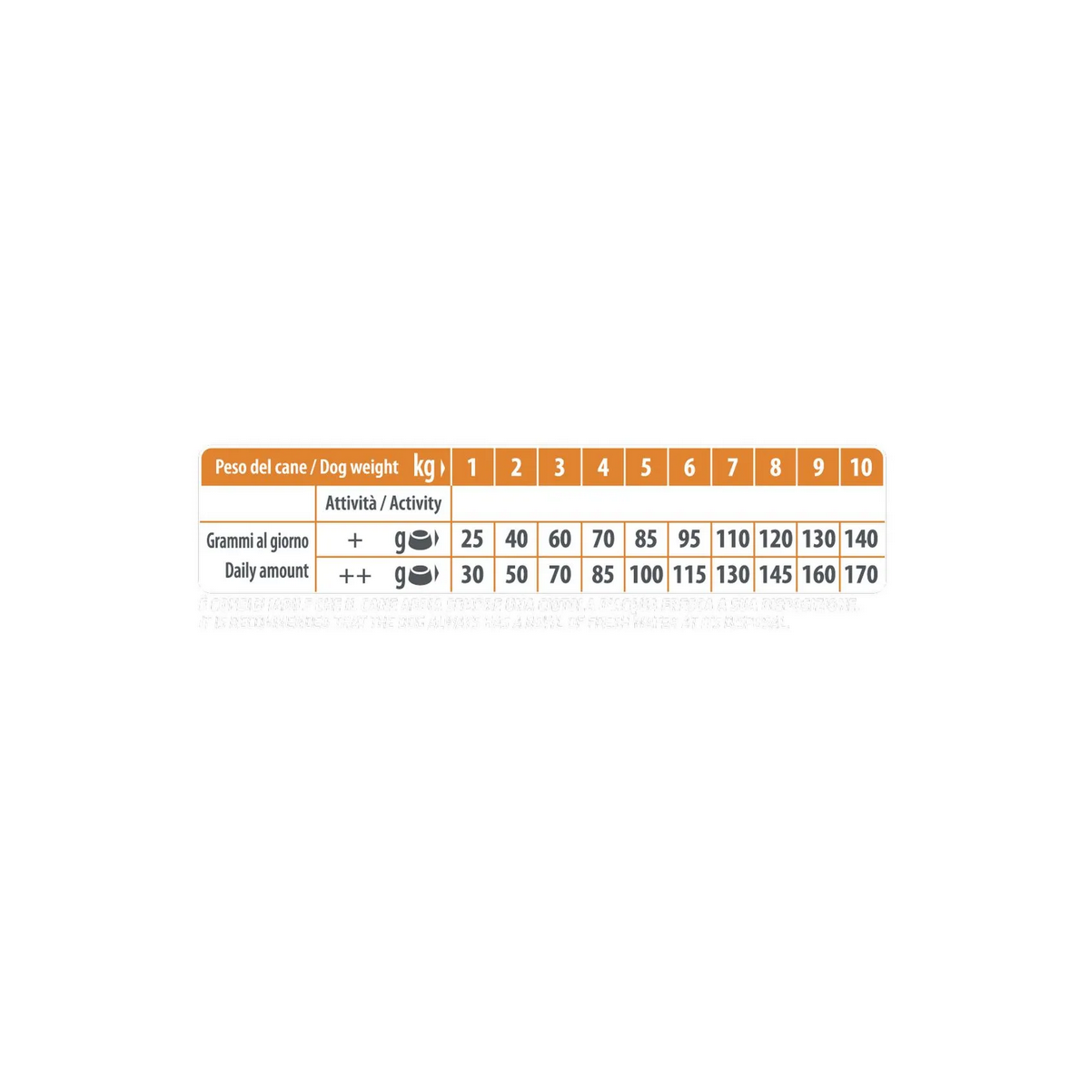 Modalità d'uso: vedere la tabella per le razioni giornaliere raccomandate. Queste quantità rappresentano solo delle linee guida. Per aiutare a mantenere il tuo cane nella condizione corporea ideale, adattare le quantità di cibo giornaliere a seconda del livello di attività, condizione fisica e dei bisogni individuali del tuo amico a quattro zampe. Lasciare sempre a disposizione acqua pulita e fresca. Per tenere sotto controllo la salute del tuo cane consultare regolarmente un veterinario.