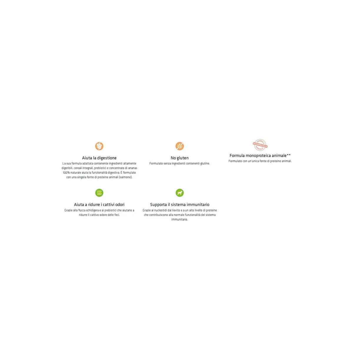 • Contiene il salmone come sola fonte di proteina animale.