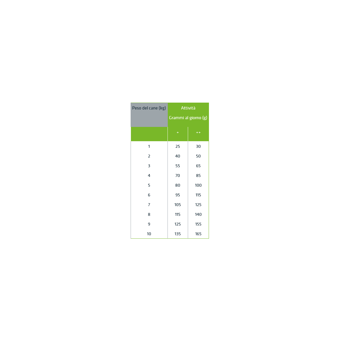 Componenti Analitici: proteina grezza 26,5%, grassi grezzi 16,5%, fibra grezza 2,5%, ceneri grezze 6,8%.