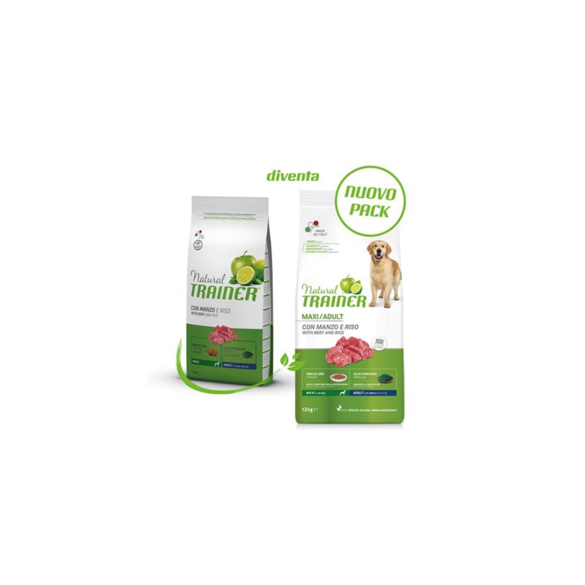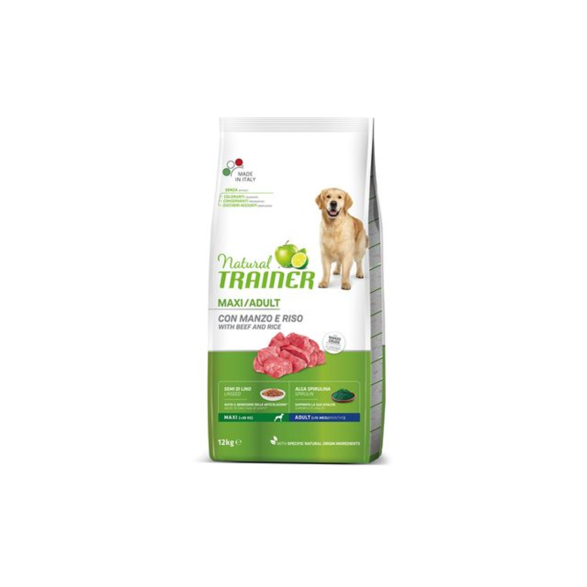 Tutte le caratteristiche di Natural Trainer Maxi Adult Manzo & Riso: