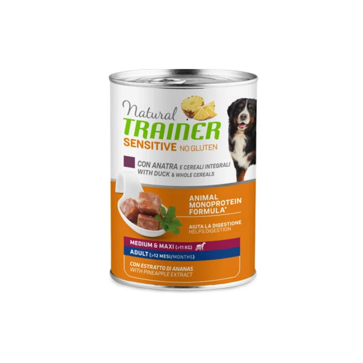 Scegli adesso Natural Trainer Sensitive Dog Lattina 400G per un alimento senza glutine ideale al tuo amico a quattro zampe.