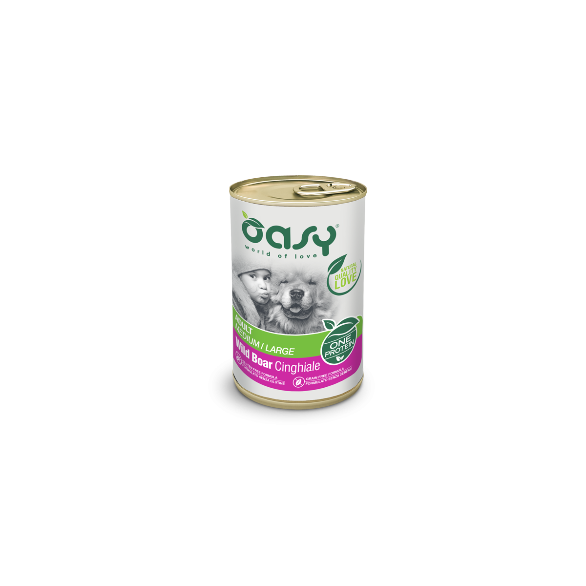 Prelibato paté monoproteico con tanta carne di Cinghiale, per offrire al tuo cane di taglia media o grande un pasto ricco e completo, ogni giorno. È ideale anche per cani con intolleranze alimentari, sensibilità cutanee e intestinali.