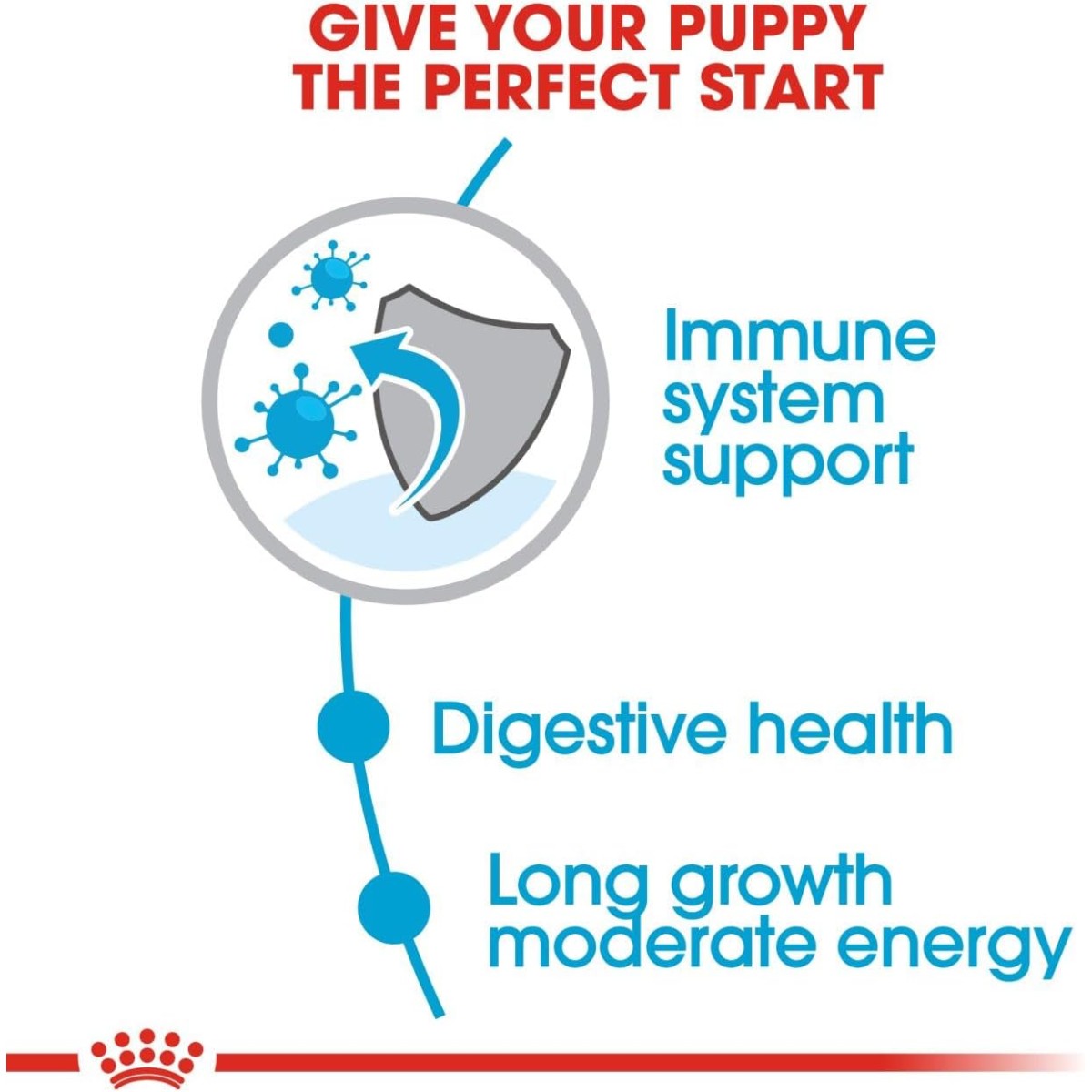 Contribuisce al consolidamento delle ossa del cucciolo di grande taglia grazie ad un apporto energetico e minerale (calcio e fosforo) controllato, aiutando il consolidamento osseo ed il buon funzionamento delle articolazioni.