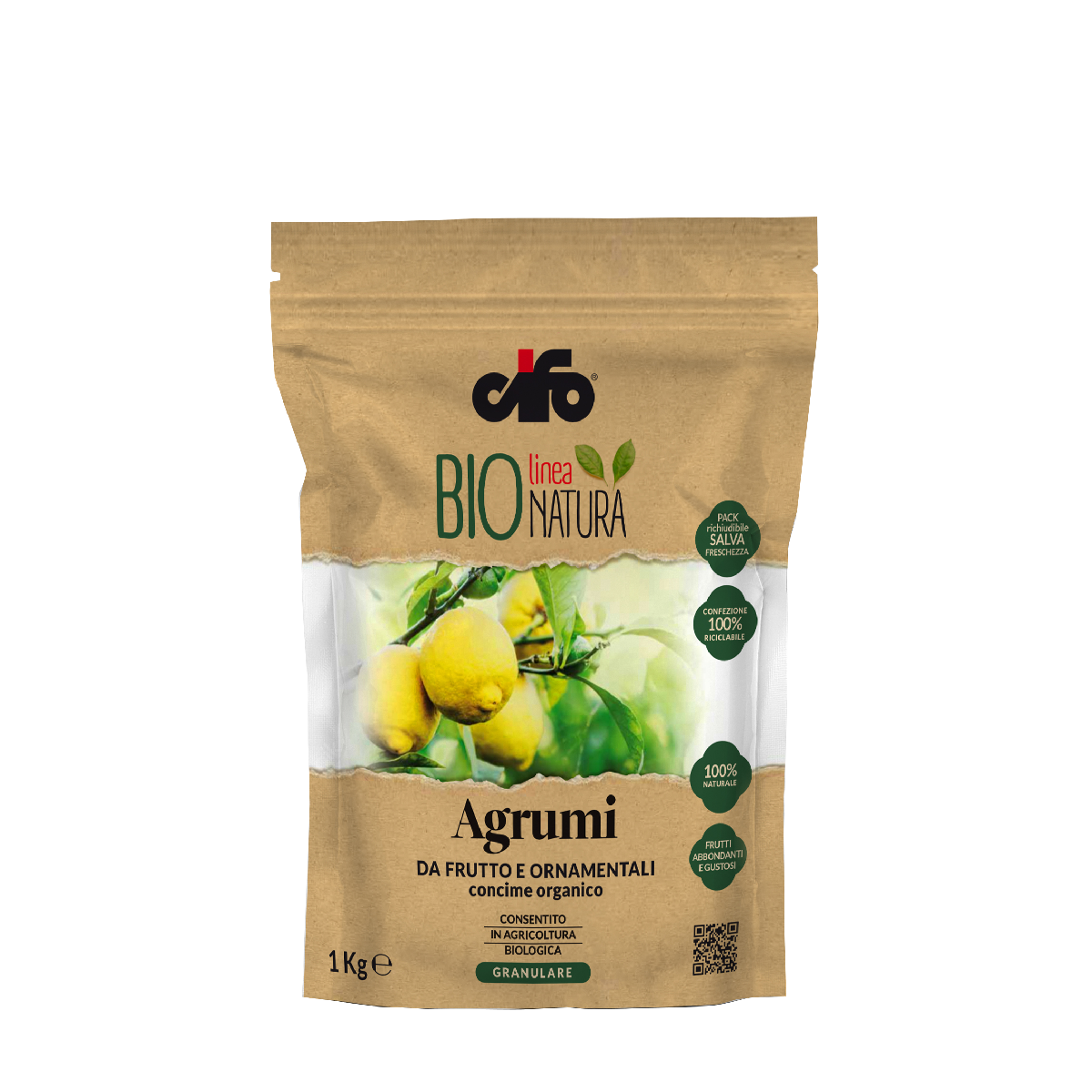 BioNatura Agrumi, concime biologico in microscaglie pronto all’uso, consentito in agricoltura biologica per tutti i tipi di agrumi da frutto e ornamentali (Limone, Arancio, Mandarino, Pompelmo, Clementino, Cedro e Kumquat, ecc).