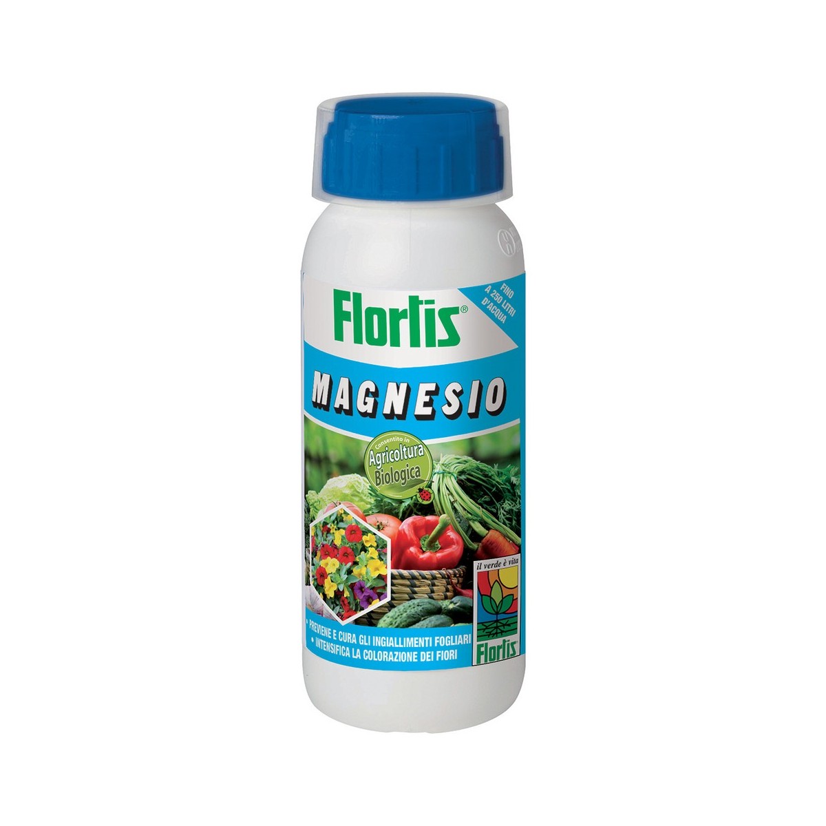 Concime liquido a base di magnesio, un elemento molto importante per le piante in quanto costituisce l'atomo centrale della clorofilla ed assume pertanto un ruolo importante nella fotosintesi. Il Magnesio partecipa anche alla formazione di pigmenti come il carotene e le xantofille dei fiori. Carenze di magnesio si manifestano sulle piante con un ingiallimento internervale delle foglie più vecchie, successivamente tali tessuti diventano necrotici e la foglia cade anticipatamente, i fiori si presentano piccoli e poco colorati Le specie più soggette alla carenza di magnesio sono gli ortaggi, quali peperoni, pomodori, melanzane, e cetrioli, ma anche alberi e piante da frutto, come il susino, l’arancio, il melo, l’ulivo, la vite. Possono accusare carenza di magnesio anche i fagiolini, le gardenie, i crisantemi, le margherite, le stelle di Natale, le patate, le cipolle, il melone, la rapa ed i ravanelli.