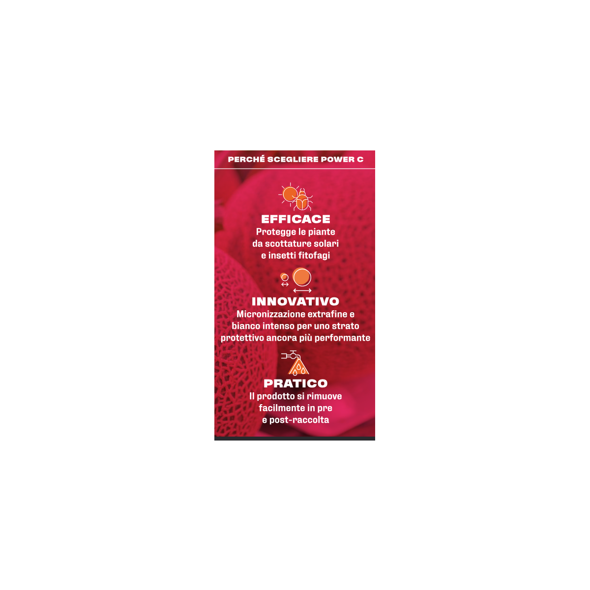 POWER C è un prodotto studiato per ottenere le migliori prestazioni dalle tue coltivazioni. La lavorazione specifica del prodotto garantisce un colore ancora più bianco e una micronizzazione maggiore. I risultati ottenibili sono superiori alla maggior parte dei caolini presenti sul mercato, compreso il GREEN C!