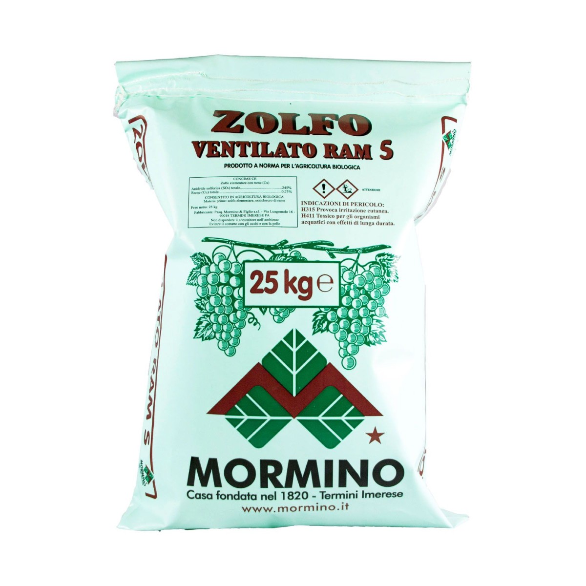 Zolfo ventilato ramato 5 MORMINO Si impiega nei trattamenti a secco contro: Oidio della vite in prefioritura e postfioritura, Oidio delle colture ortive (carciofo, cardo, cetriolo, zucchino, melone, pomodoro, melanzana, lattughe e simili, pisello) e delle colture floreali di pieno campo. Il prodotto svolge inoltre un’azione complementare contro la peronospora della vite, delle colture ortive sopra citate e delle floreali.
