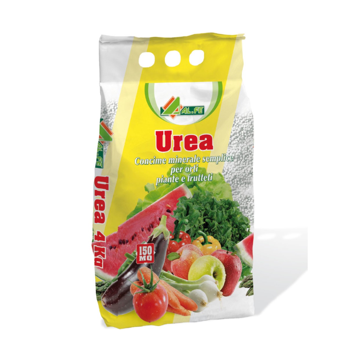 L’Urea si distribuisce sia nella preparazione del terreno che durante la crescita delle varie colture nelle dosi di 4-5 kg per 100 mq.