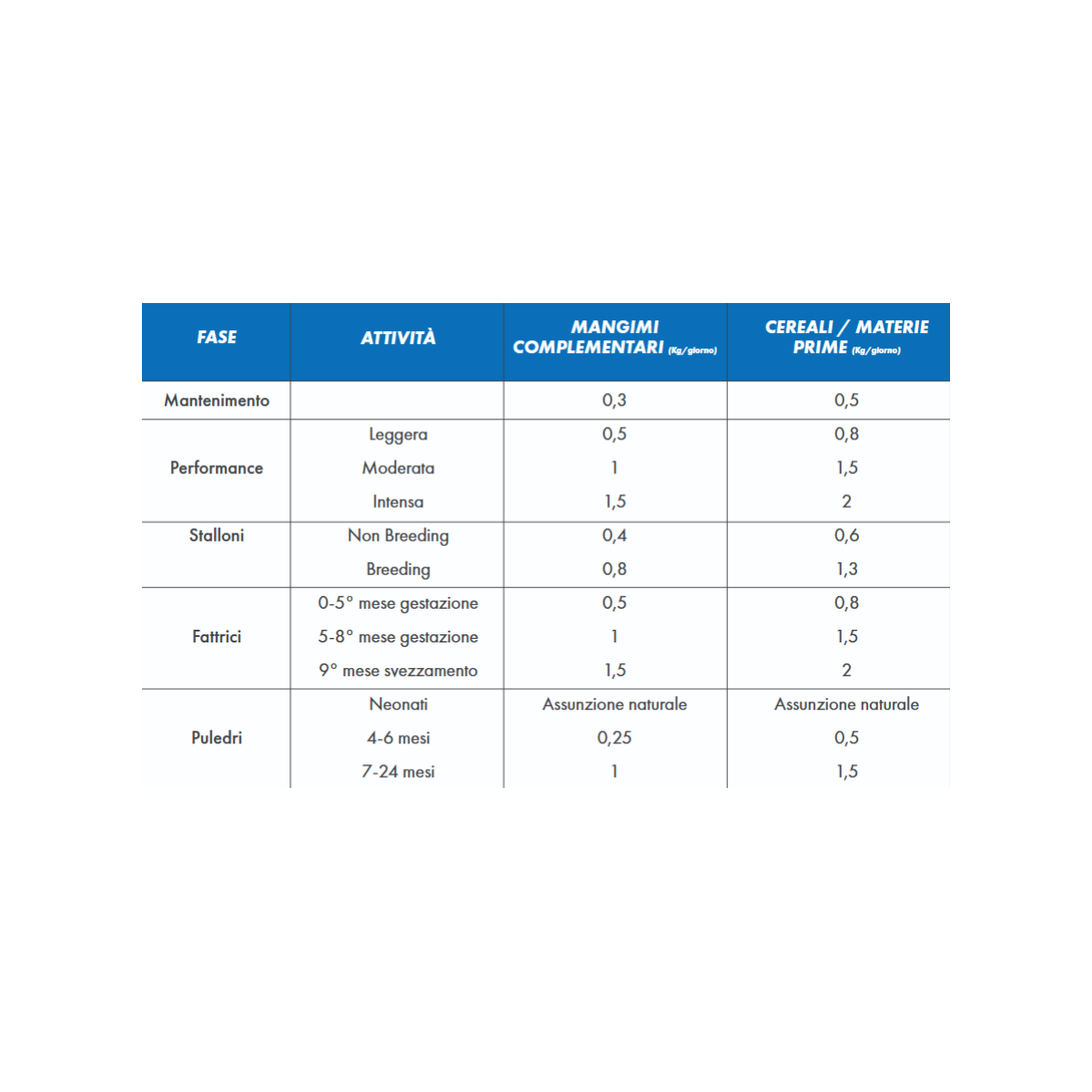 - Soddisfa fabbisogni dei puledri neonati ed in crescita