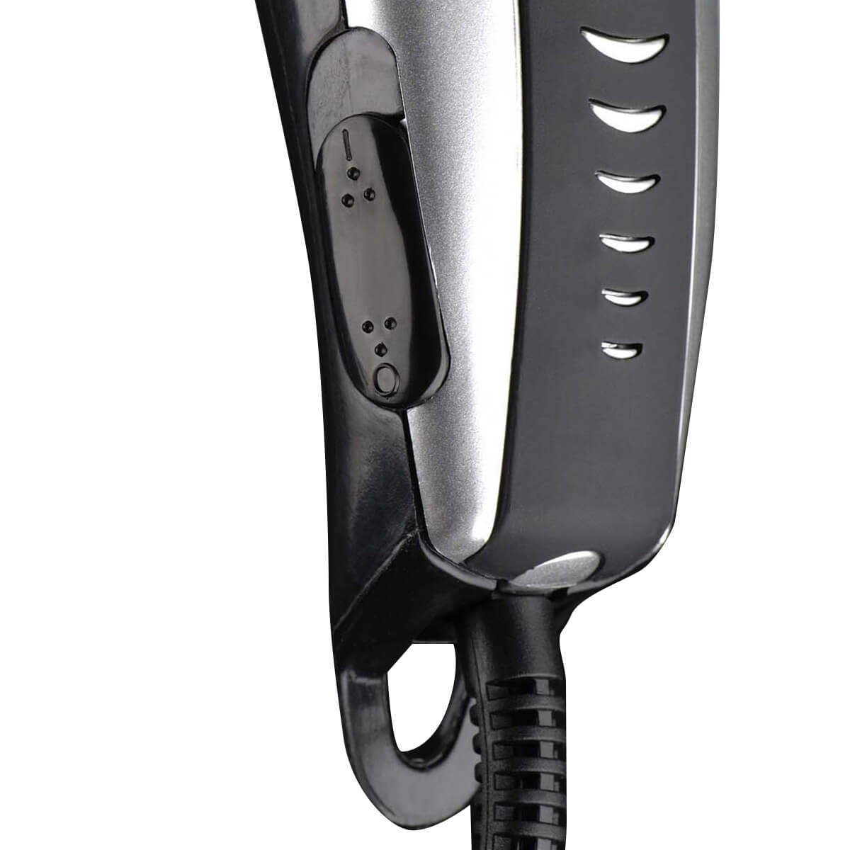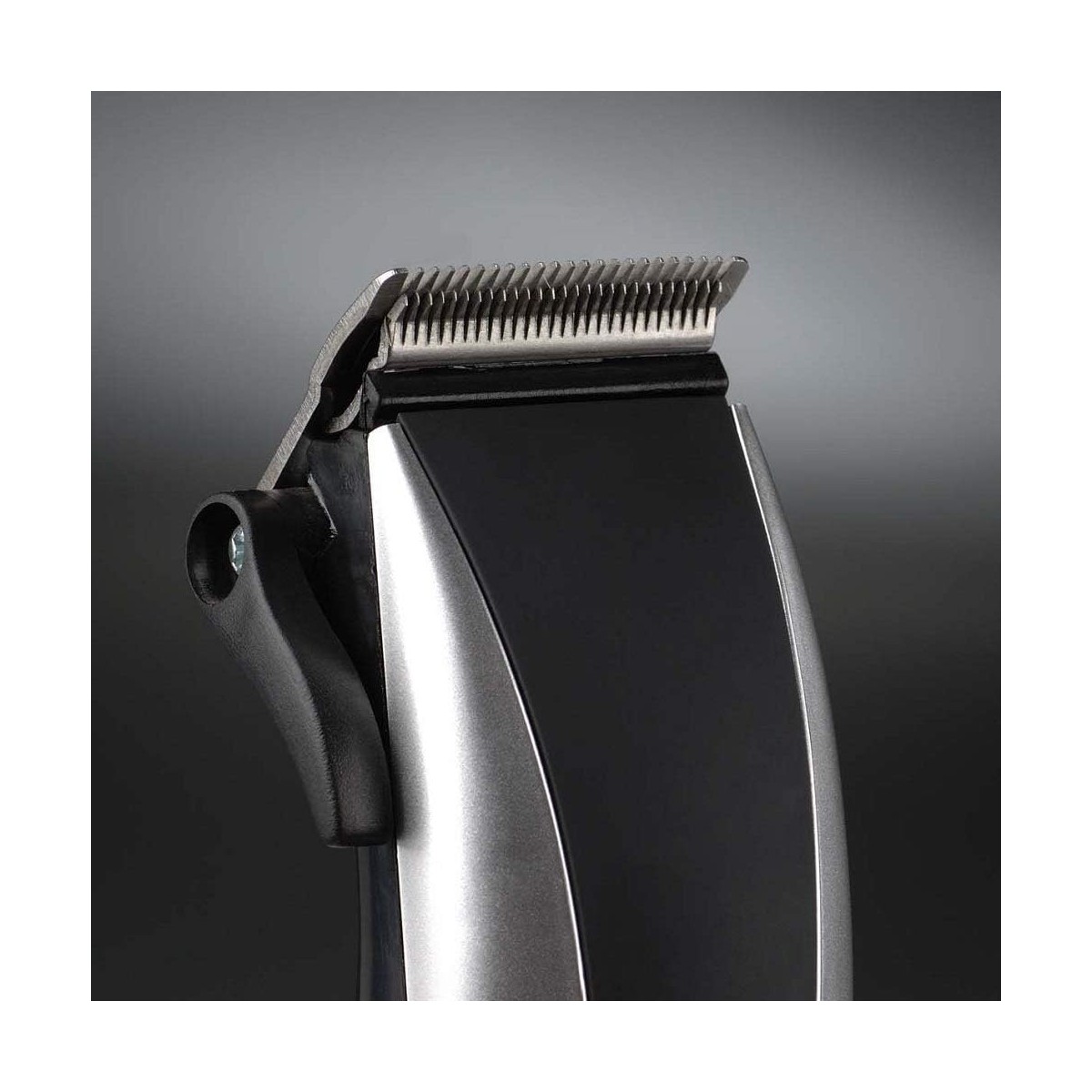 Tagliacapelli a rete. Lame in acciaio inox. Regolazione del taglio da 1 a 14 mm. 4 pettini distanziatori per regolare la lunghezza del taglio: 3, 6, 9 e 12 mm. Levetta per regolazioni intermedie. Kit per manutenzione: olio lubrificante per lame e spazzoline di pulizia. Kit da taglio: pettine e forbici.
