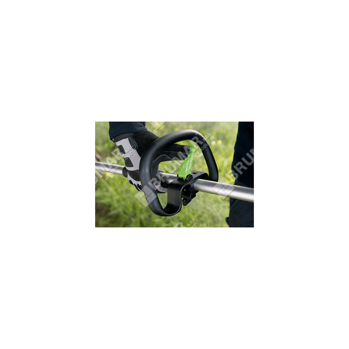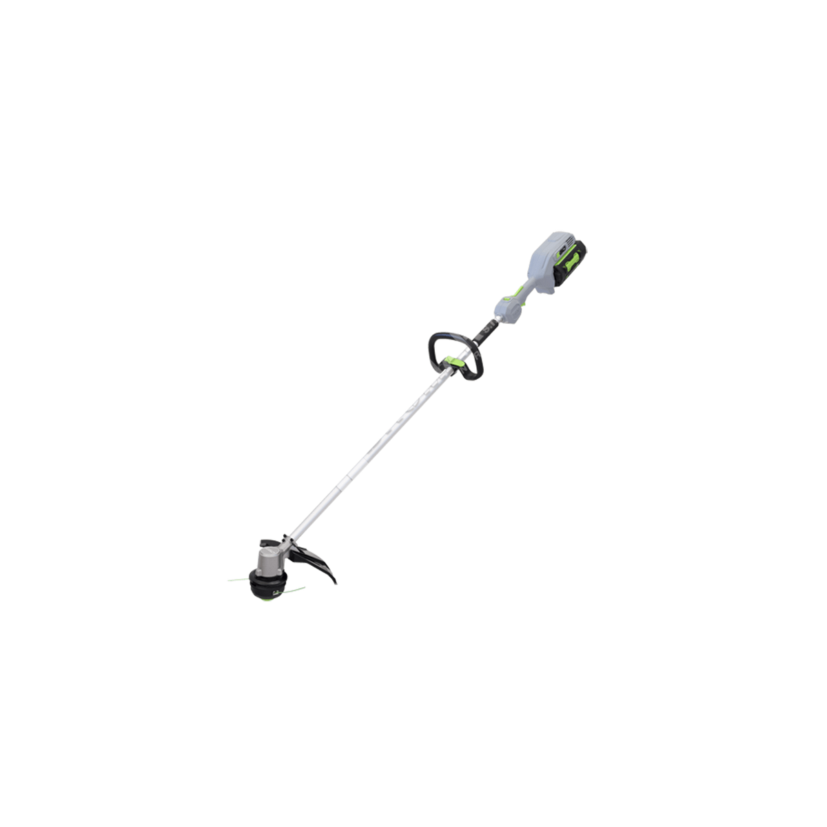Decespugliatore a batteria EGO ST 1300 E con testina e motore Brushless. Fornito senza batteria e senza caricabatterie. A richiesta batteria agli ioni di litio Chervon 56V (intercambiabile con altri utensili da giardino) e caricabatteria standard o caricabatteria rapido. Asta in alluminio. Trasmissione rigida. Impugnatura singola, anteriore regolabile. Testina di taglio a 2 fili, espulsione filo batti e vai, guida filo di protezione. Doppio interruttore di sicurezza. Motore a batteria al litio, ecologico e privo di manutenzione.