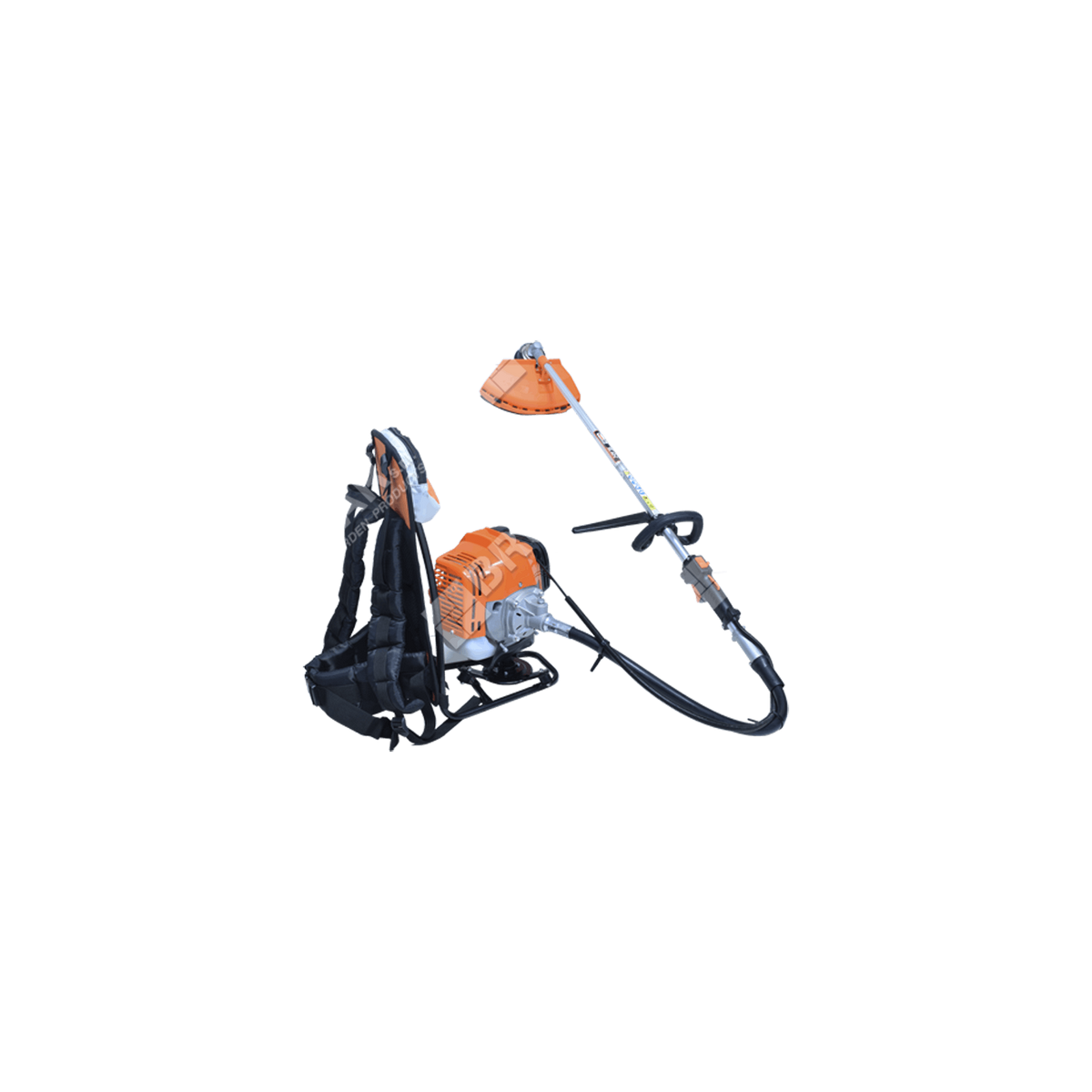Decespugliatore GREENLINE GL 53-ZN. Asta in alluminio con flessibile Ø 26 mm. Impugnatura singola con barrier di sicurezza e comandi integrati. Zaino ergonomico con supporti antivibranti. Testina nylon batti e vai, disco in acciaio, parasassi di sicurezza. Motore a 2 tempi, potente, ecologico e a bassa rumorosità