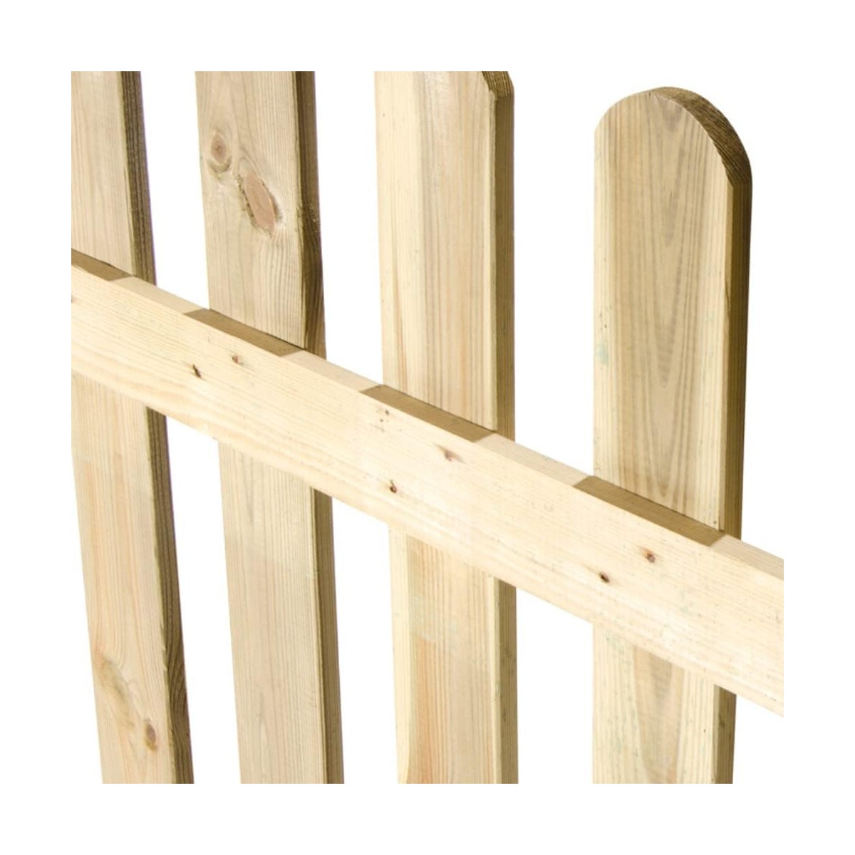 Modulo per staccionata in legno impregnato. Dimensioni: 180x90 cm. Elementi: 15x90 mm con taglio angoli a 45°. Traverse: 15x60 mm.