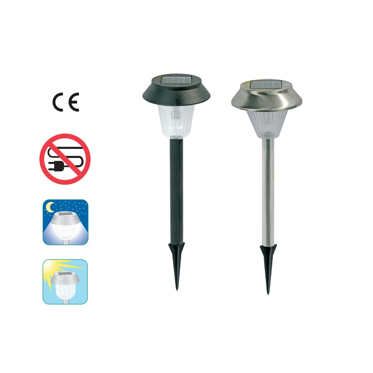 . Ricarica con luce solare durante il giorno e accensione automatica alla sera.