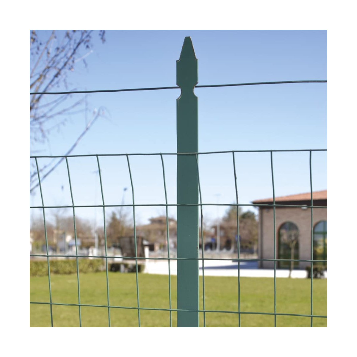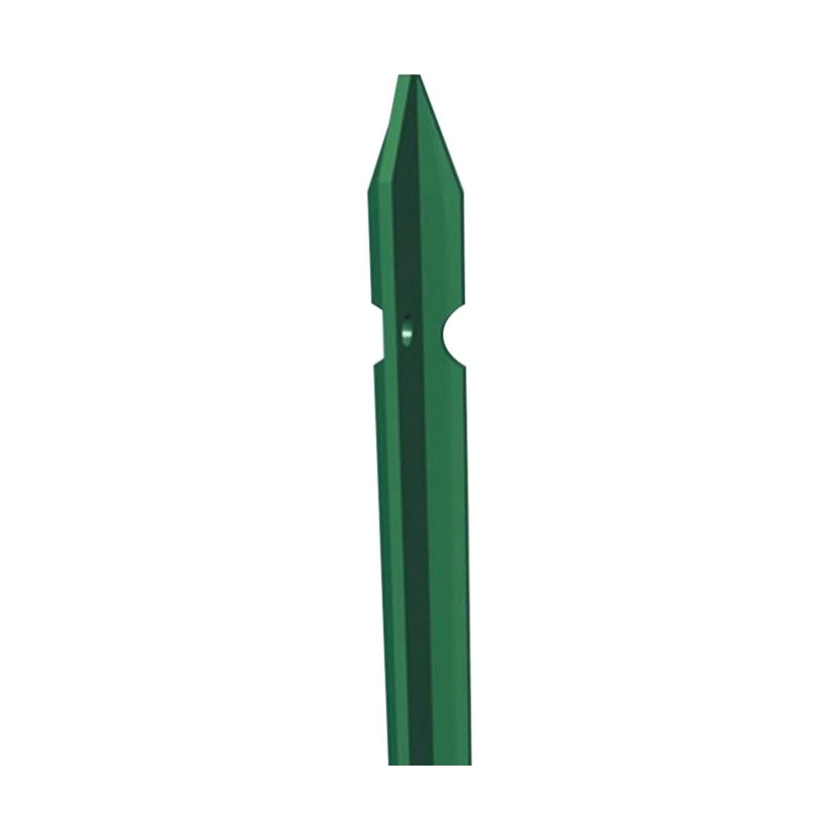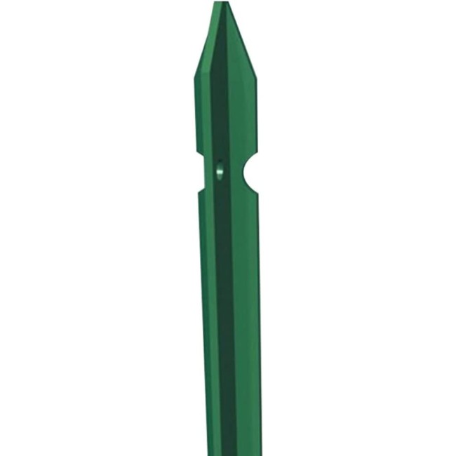 Paletto in ferro plastificato a t, cm 30x30xh.150, completo di foratura per passaggio fili di tensione e punta superiore, adatto per il posizionamento di recinzioni sia su terreno che su muretto