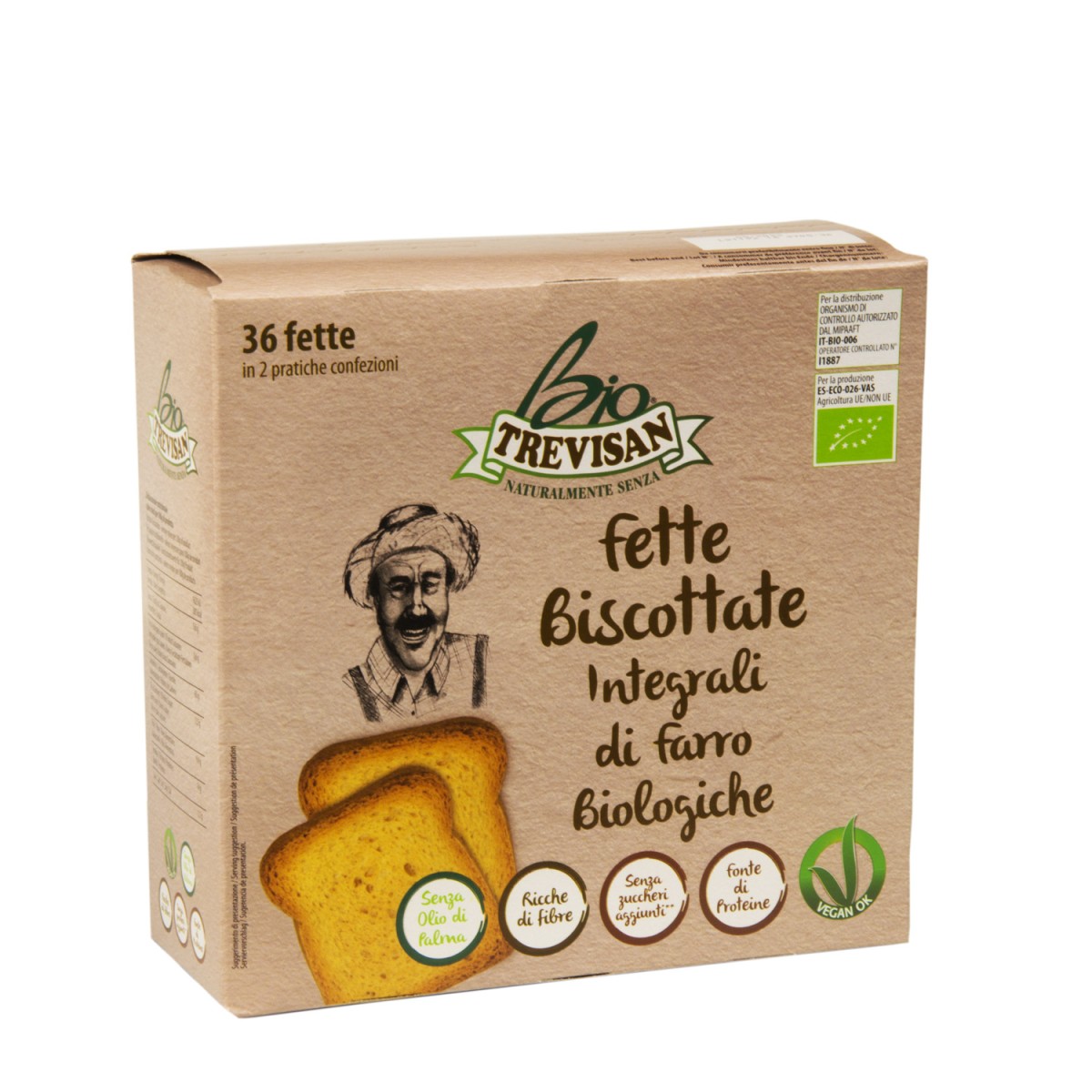 Semplici, genuine e ricche di fibra. Le Fette Biscottate Integrali al Farro sono perfette per iniziare la giornata con il giusto sprint: biologiche, senza olio di palma e certificate Vegan Ok. Le Fette Biscottate sono divise in due pratiche confezioni salvafreschezza.