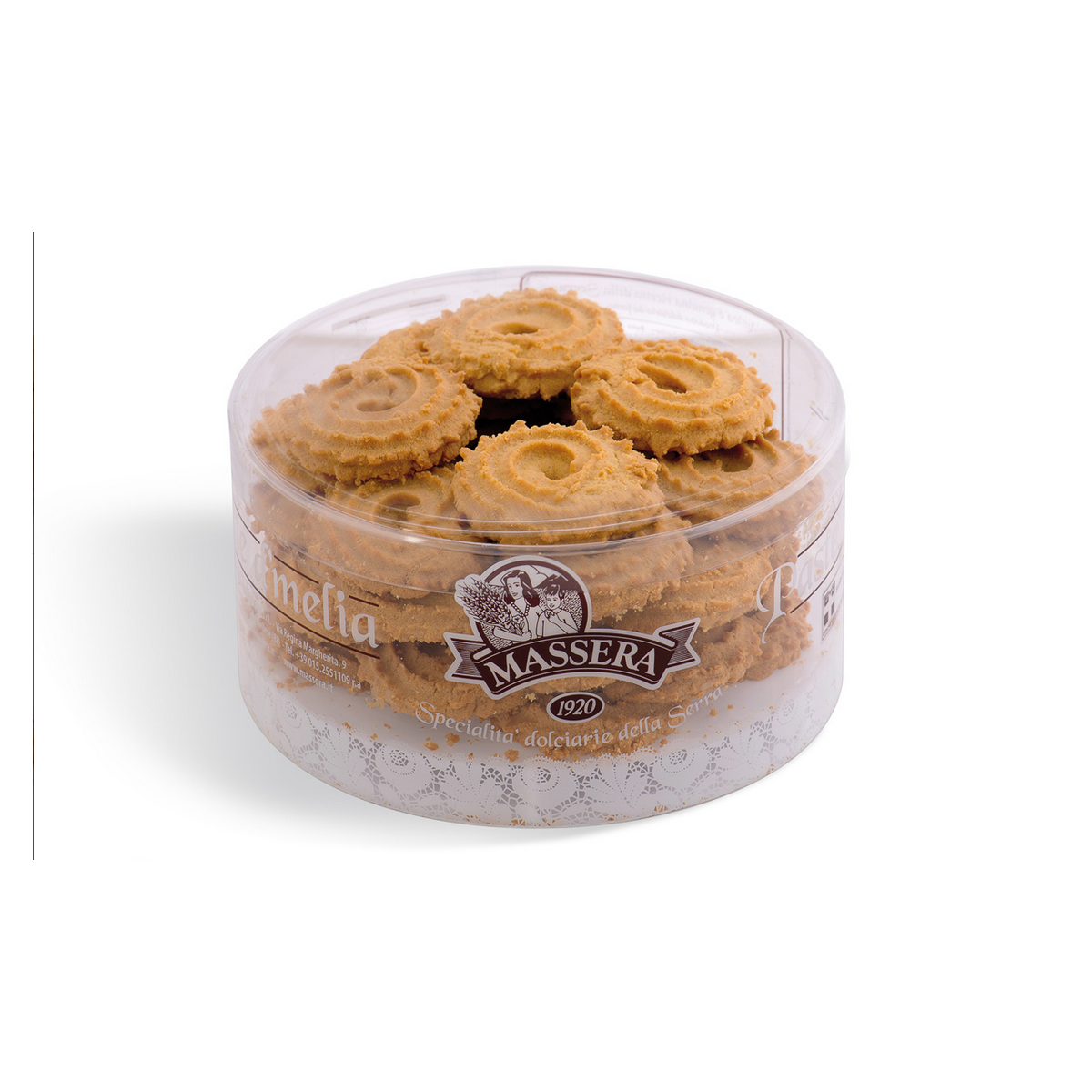 Farina di grano tenero t.0, zucchero, burro, farina granoturco, uova, miele, agente lievitante, sale, aromi.
