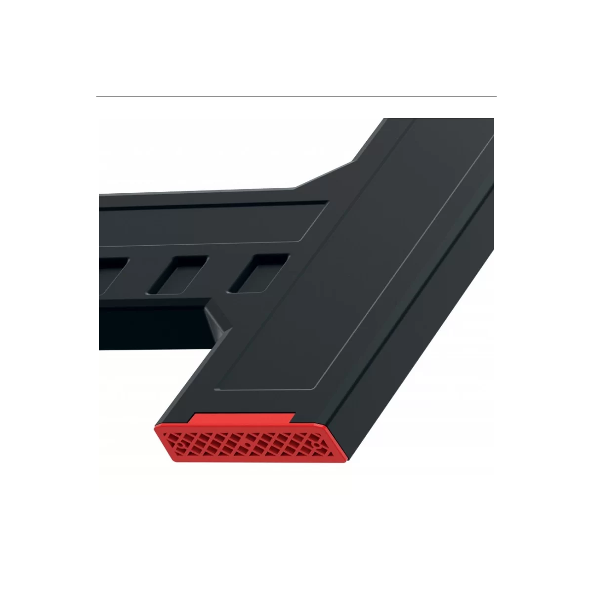 Questo cavalletto è utilizzabile anche per effettuare tagli grazie al suo pianetto d'appoggio con la scala misurazione e l'incavo per taglio.