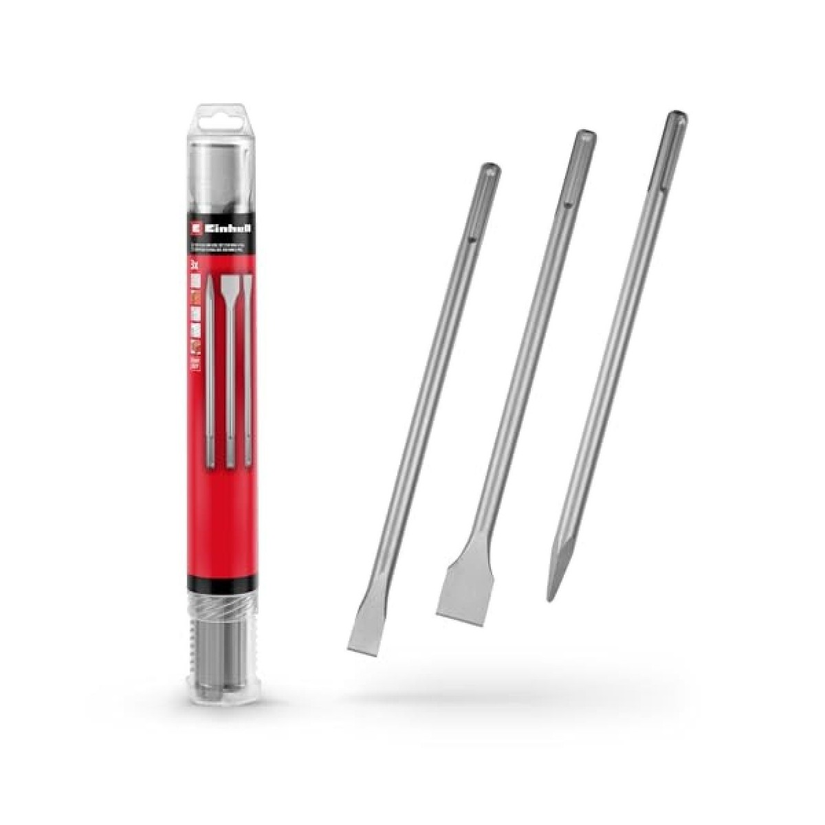 Originale Einhell set di scalpelli SDS Max da 3 pezzi, 400 mm (scalpello a punta, scalpello piatto da 20 mm, scalpello a vanga da 40 mm, acciaio 40 Cr, per lavori di demolizione e ristrutturazione)